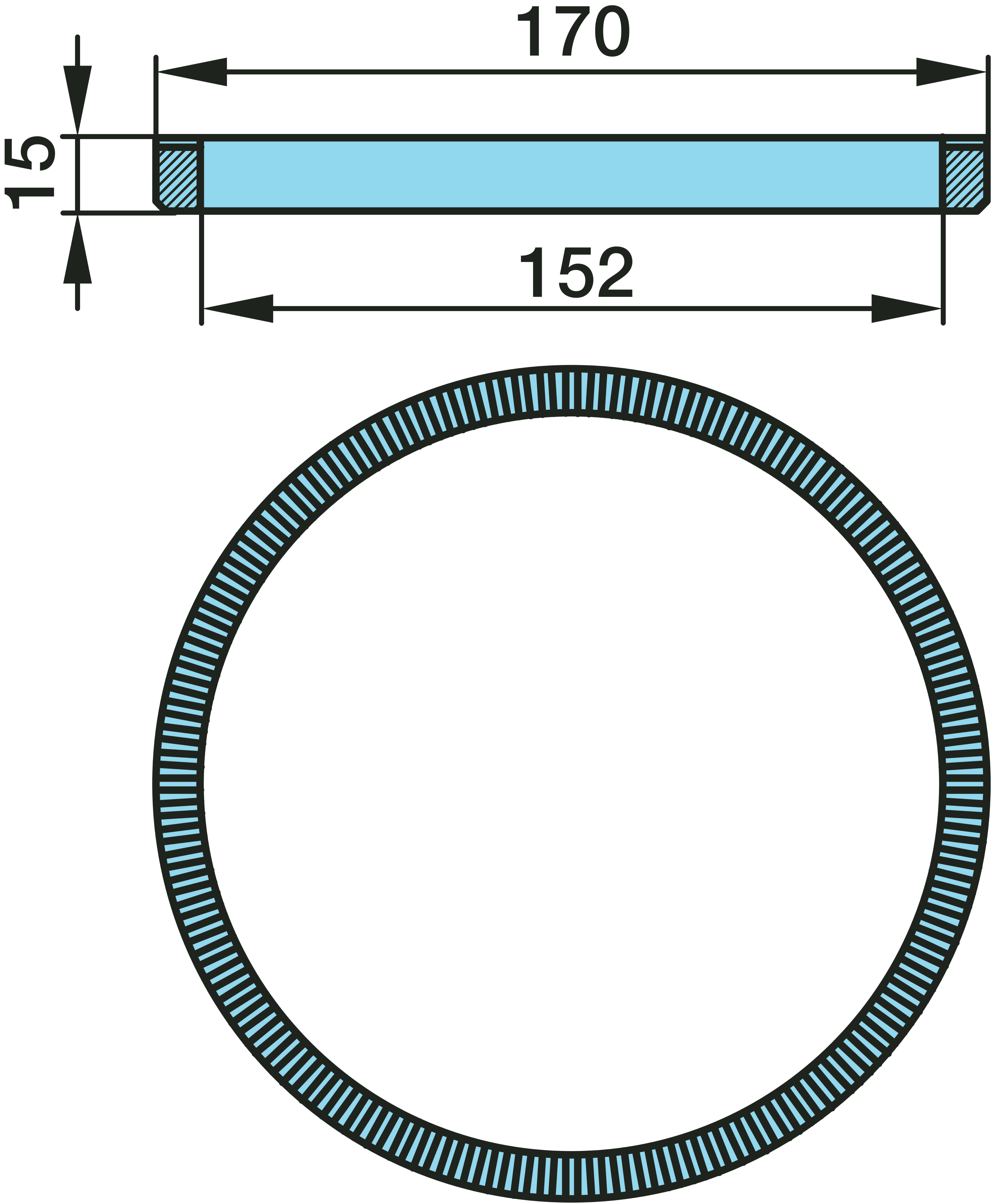 Dimension: Ø 152 / 170 x 15 (100 Z)