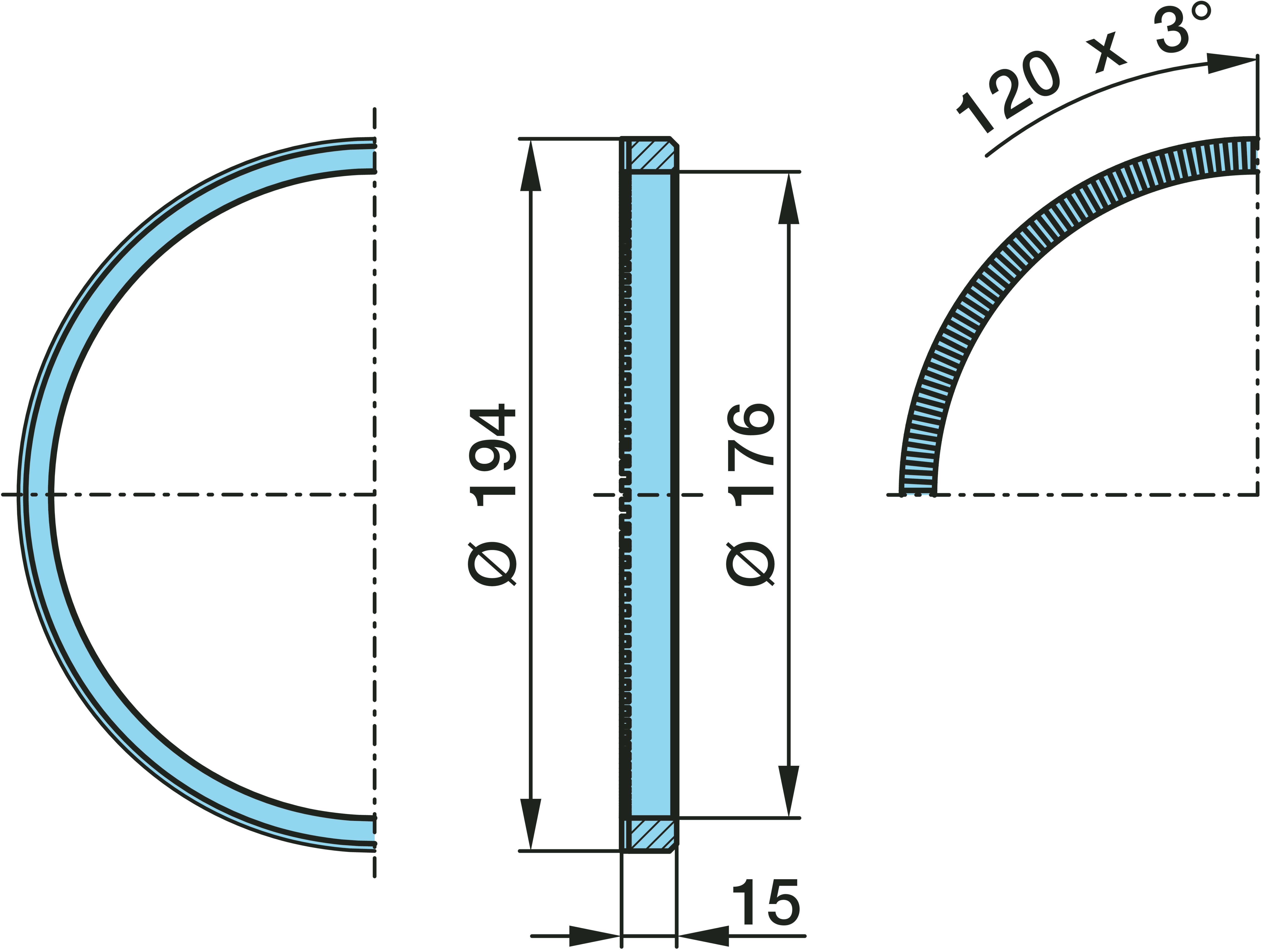 Dimension: Ø 176 / 194 x 15 (120 Z)