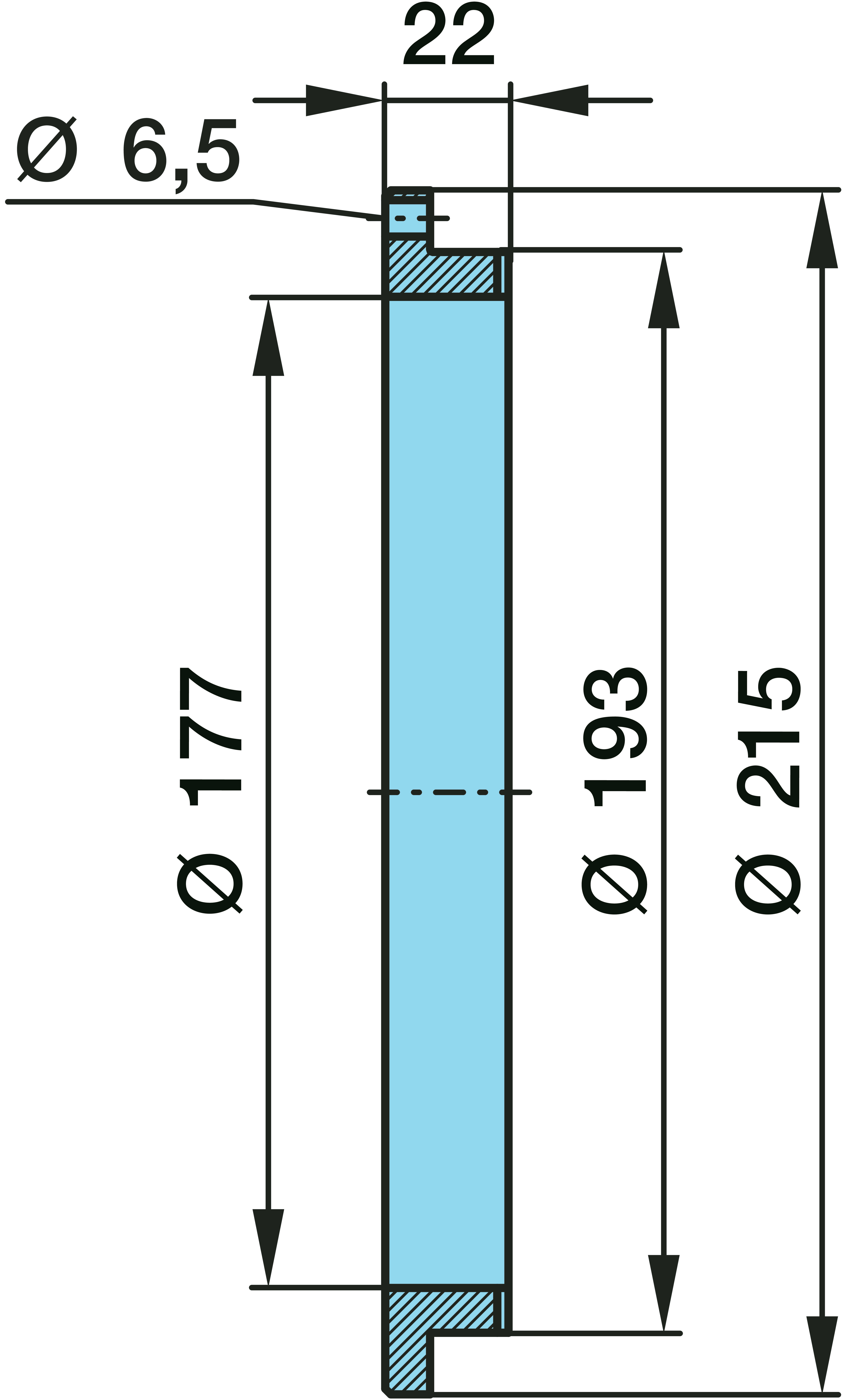 Dimension: Ø 177 / 193 / 215 x 22 / 5 x Ø 6,5 (80 Z)