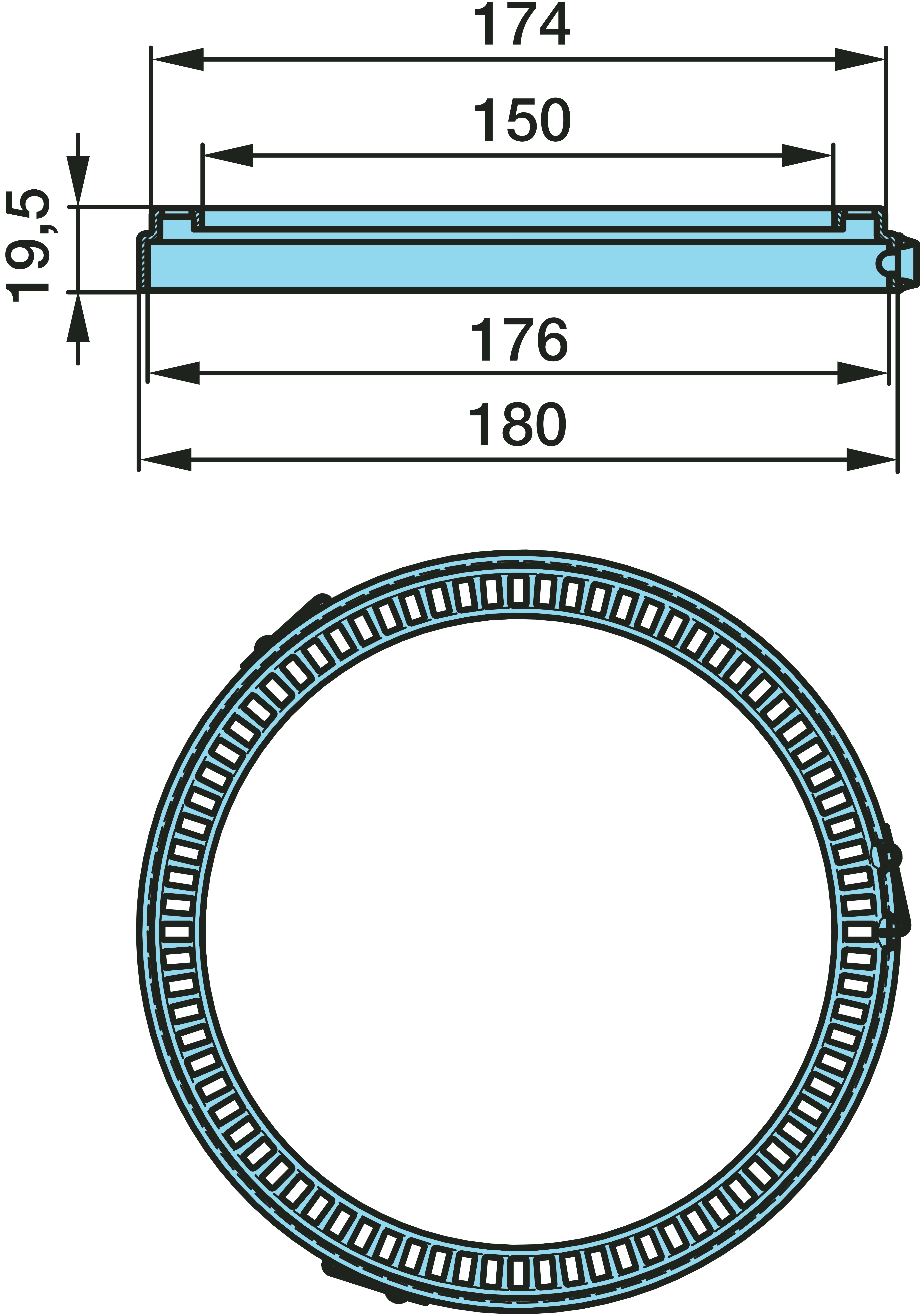 Dimension: Ø 150 / 174 / 176 / 180 x 19,5 (100 Z)