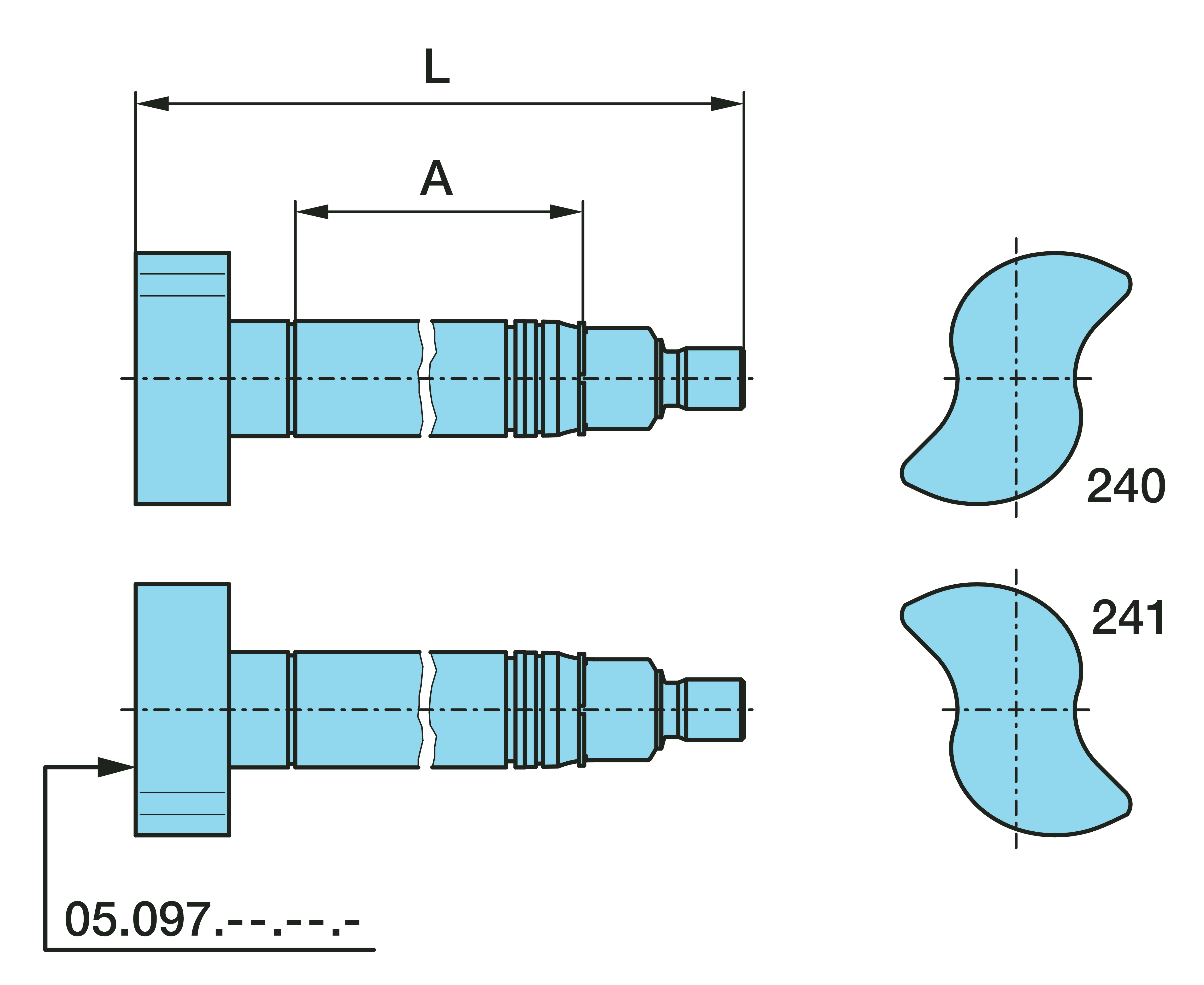 05.097.03.72.0 Jarruakseli, rumpujarru1 S-NOKKA-AKSELI L=256 A=141,5 OIK SN42..