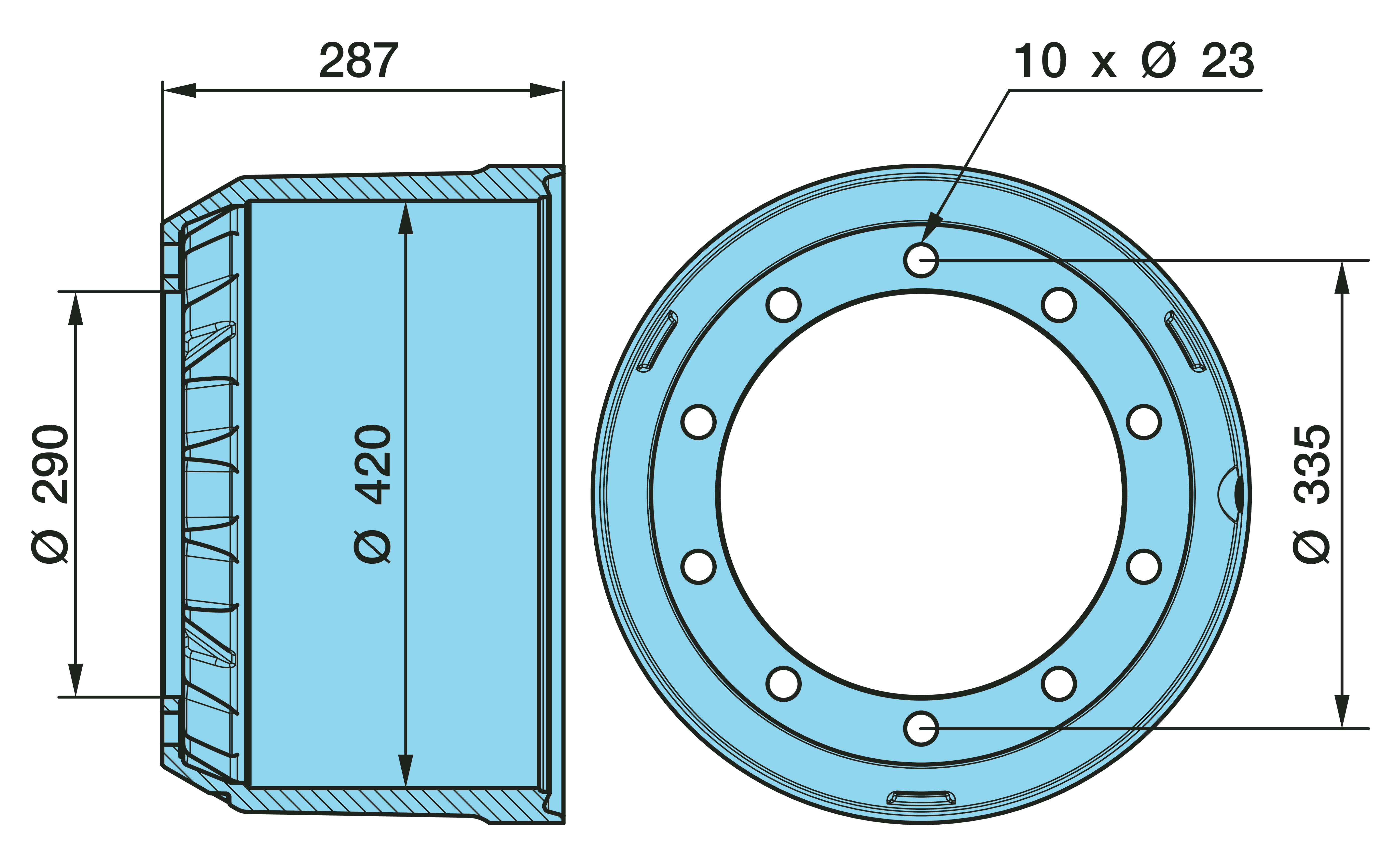 Dimension: Ø 420 x 200 / 289 / 290 / 10 x Ø 23 / 335