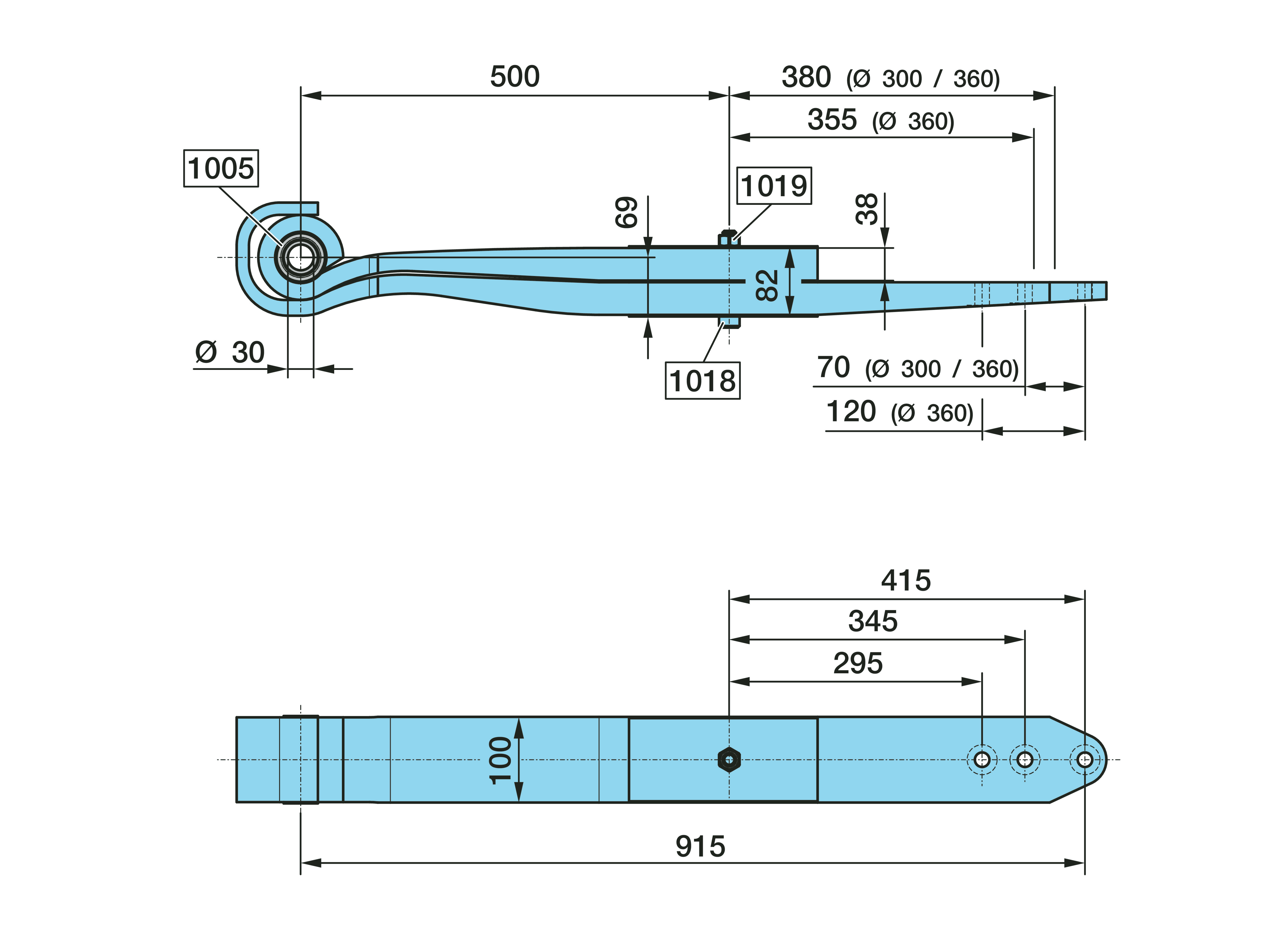 Dimension: Ø 30, 2 x 38 / 100, L1 500 / 355/380