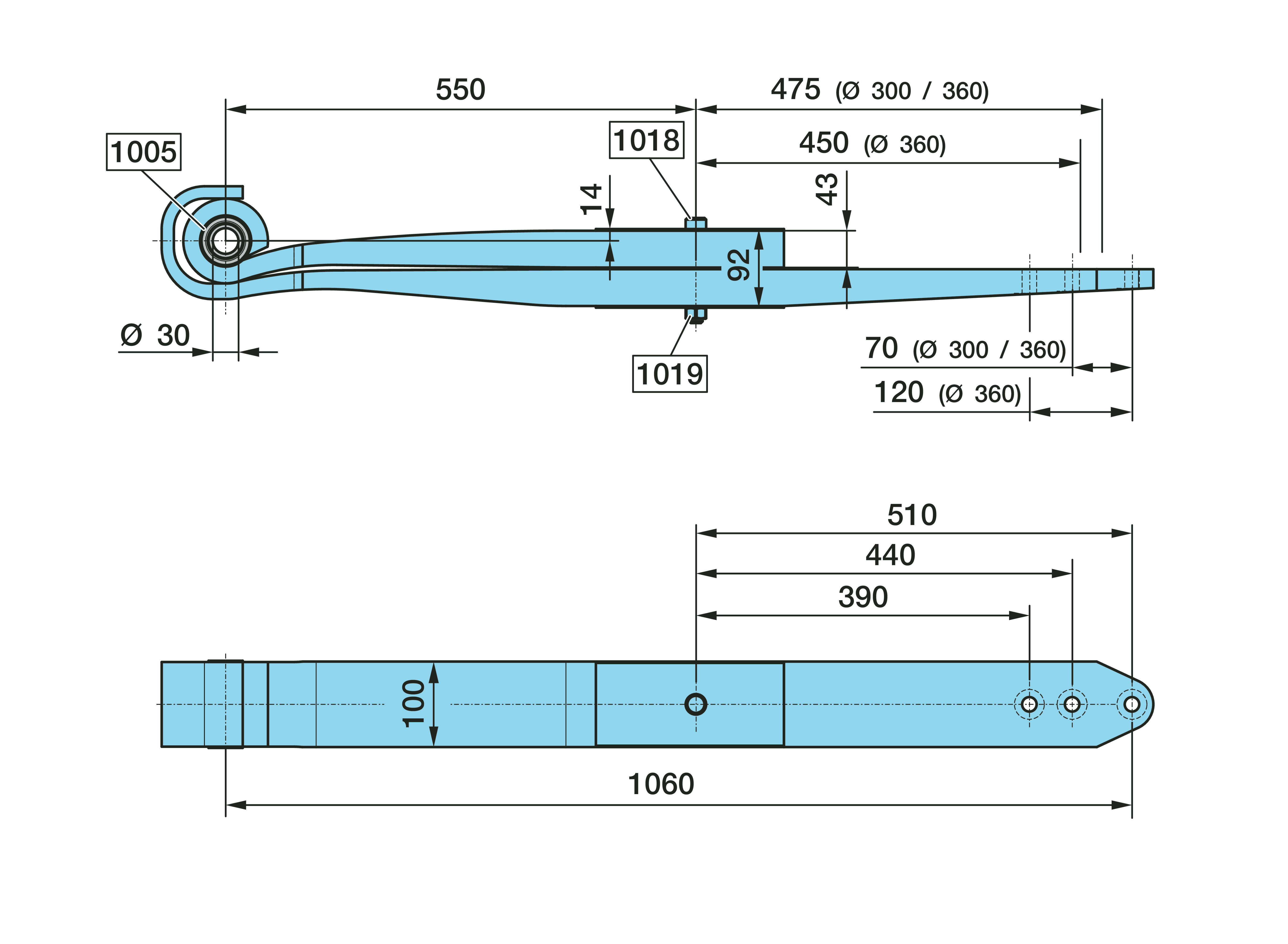 Dimension: Ø 30, 2 x 43 / 100, L1 550 / 450/475