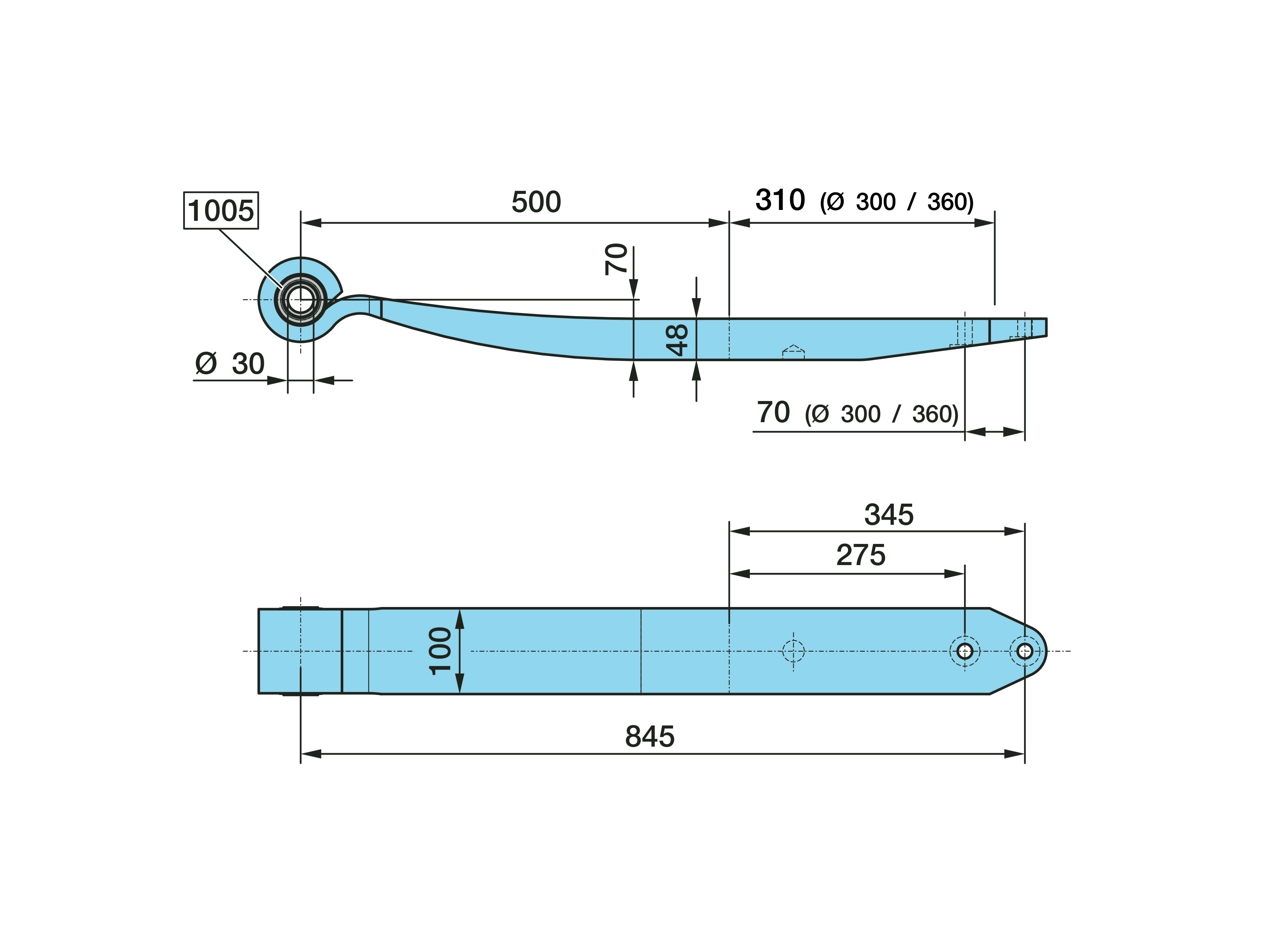 Dimension: Ø 30, 1 x 48 / 100, L1 500 / 310