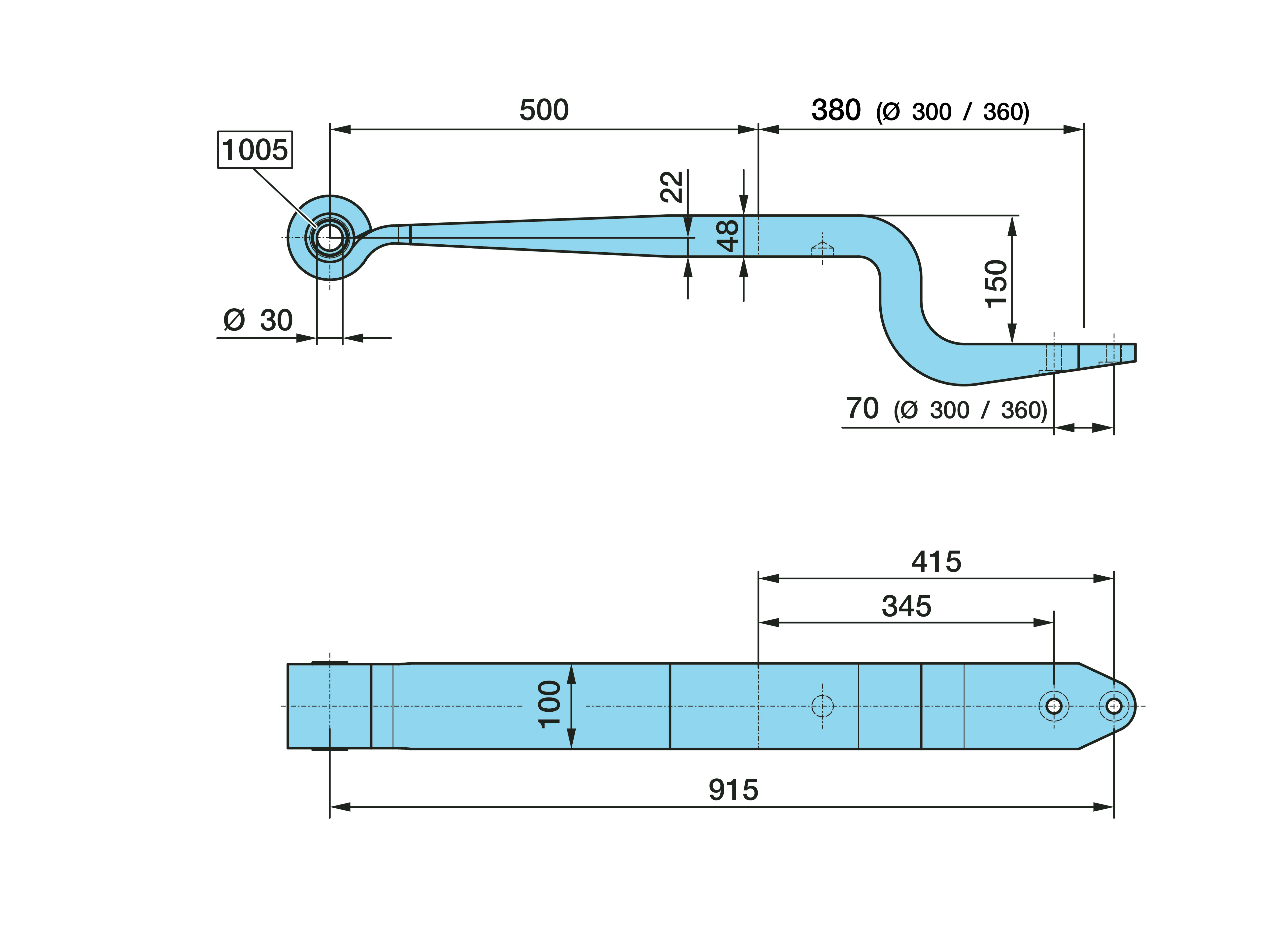 Dimension: Ø 30, 150, 1 x 48 / 100, L1 500 / 380