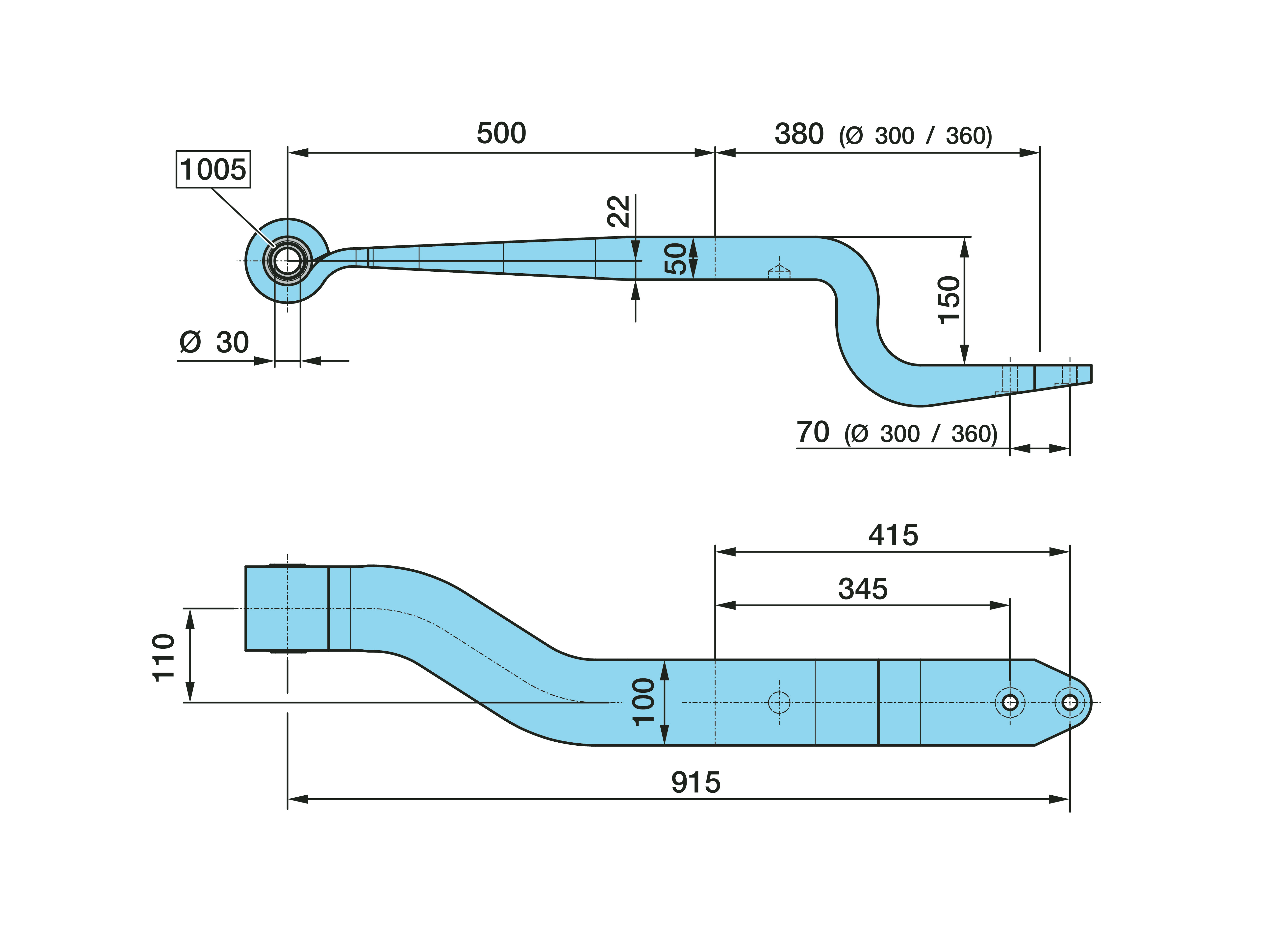 Dimension: Ø 30, 150, 1 x 50 / 100, L1 500 / 380