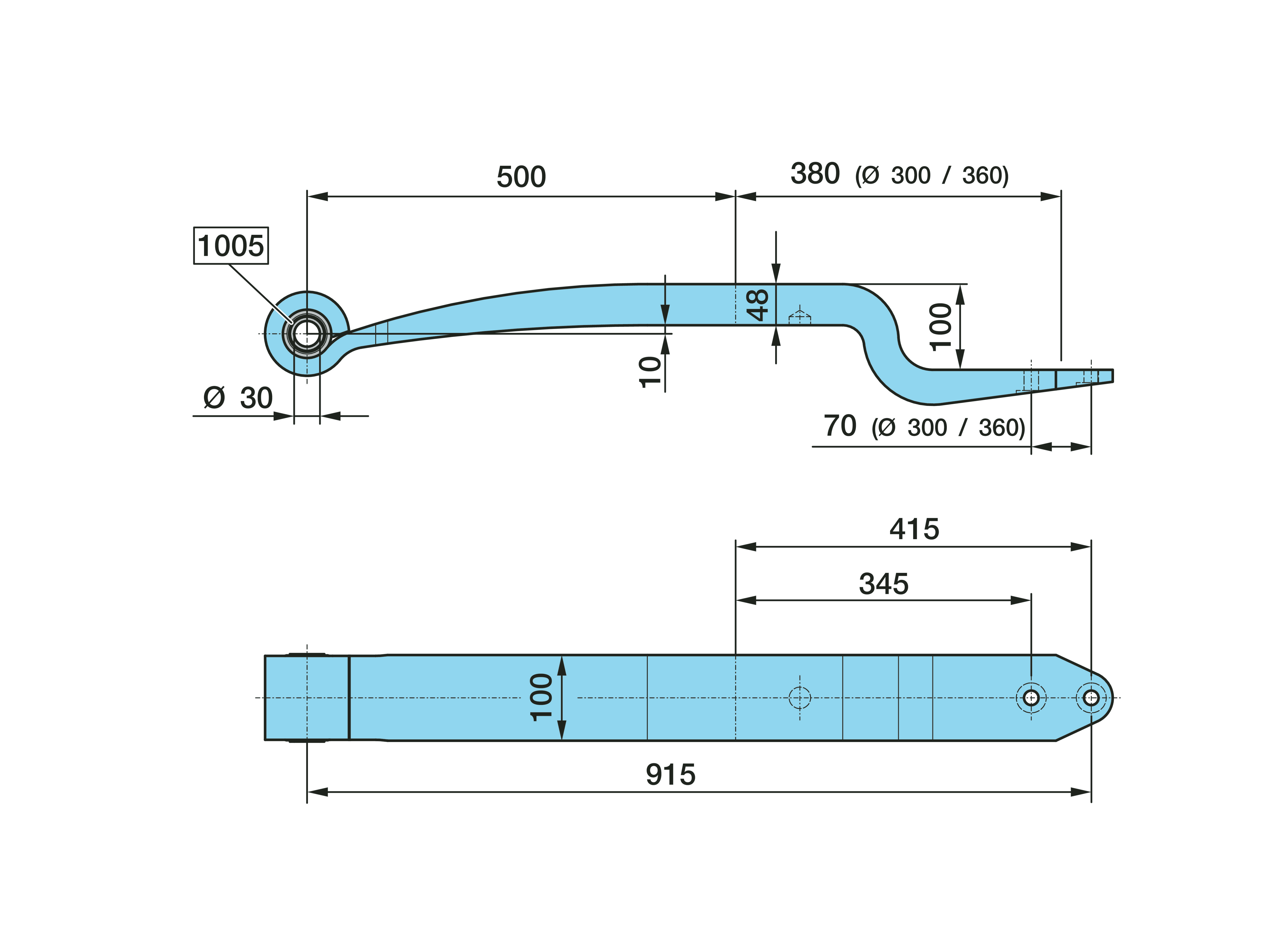 Dimension: Ø 30, 100, 1 x 48 / 100, L1 500 / 380
