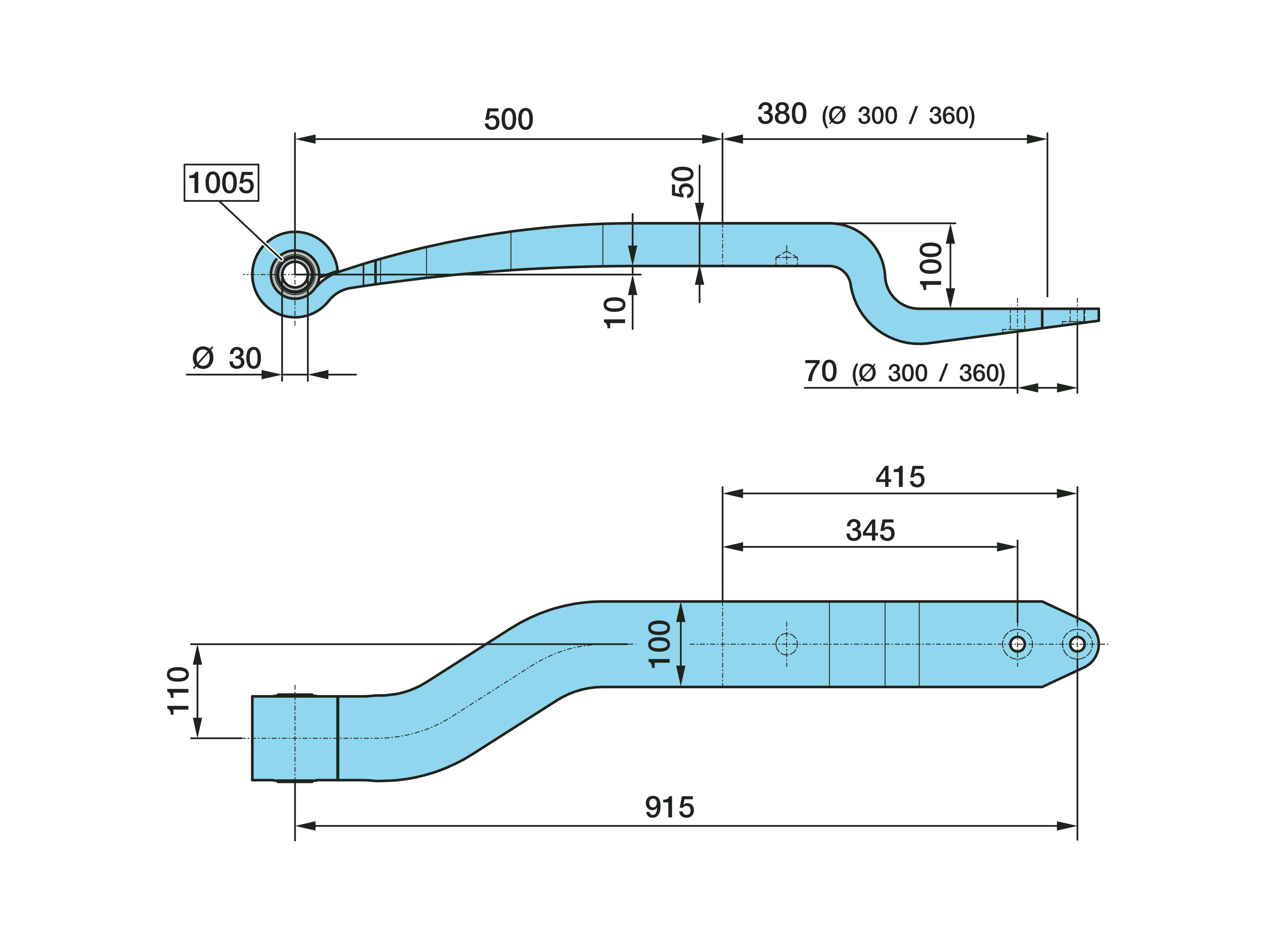 Dimension: Ø 30, 100, 1 x 50 / 100, L1 500 / 380