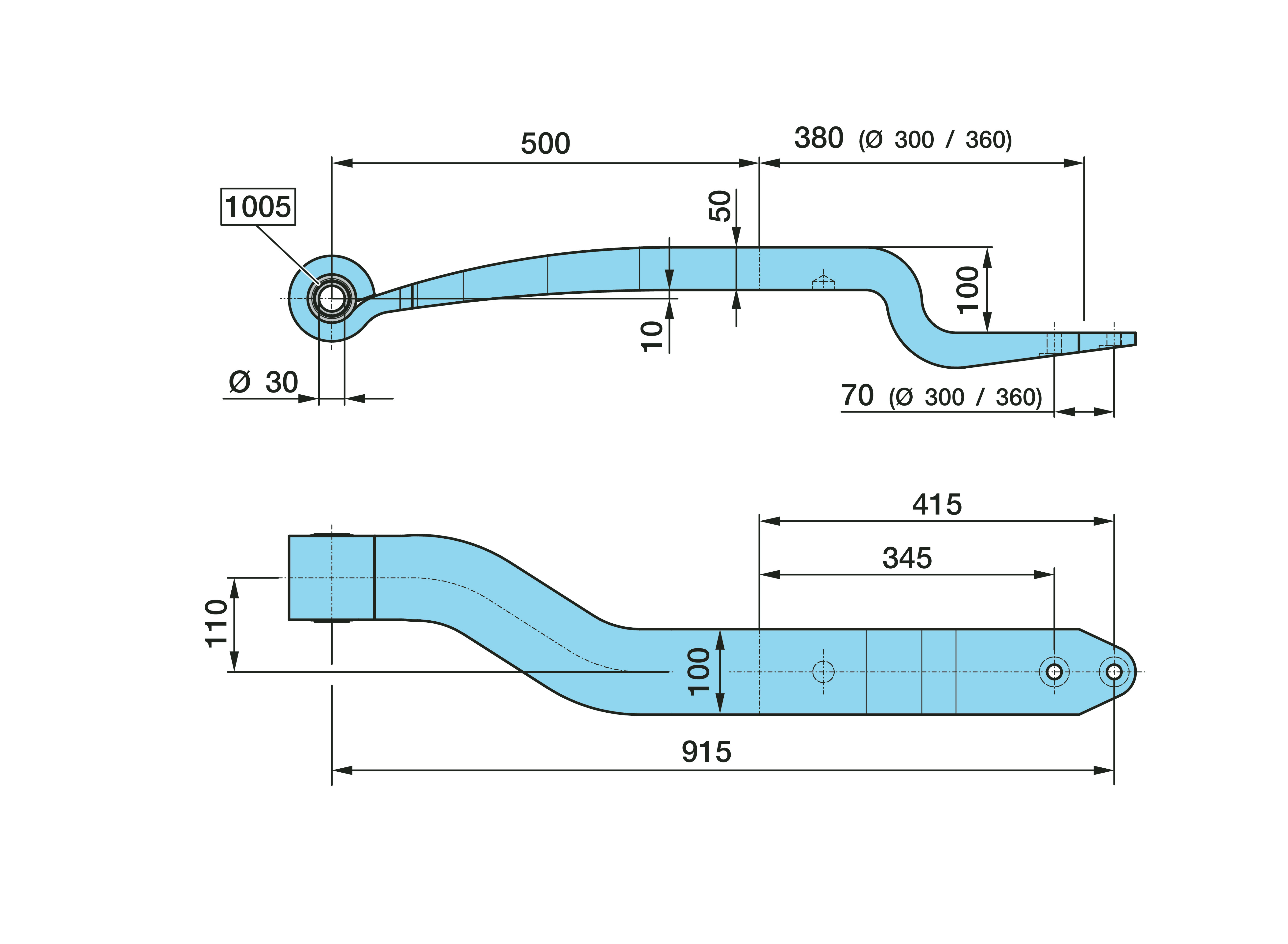Dimension: Ø 30, 100, 1 x 50 / 100, L1 500 / 380