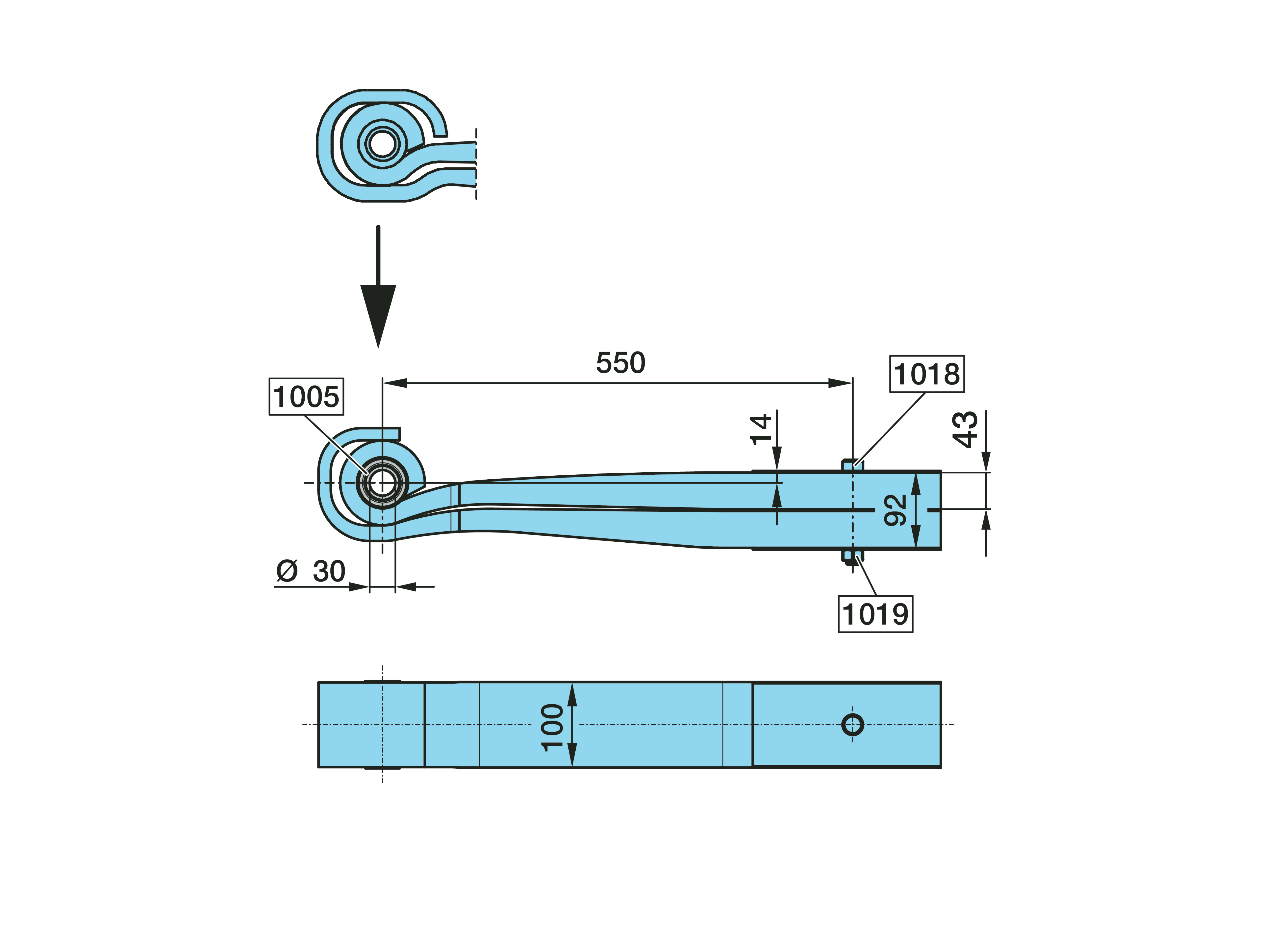 Dimension: Ø 30, 2 x 43 / 100, L1 550 / ---
