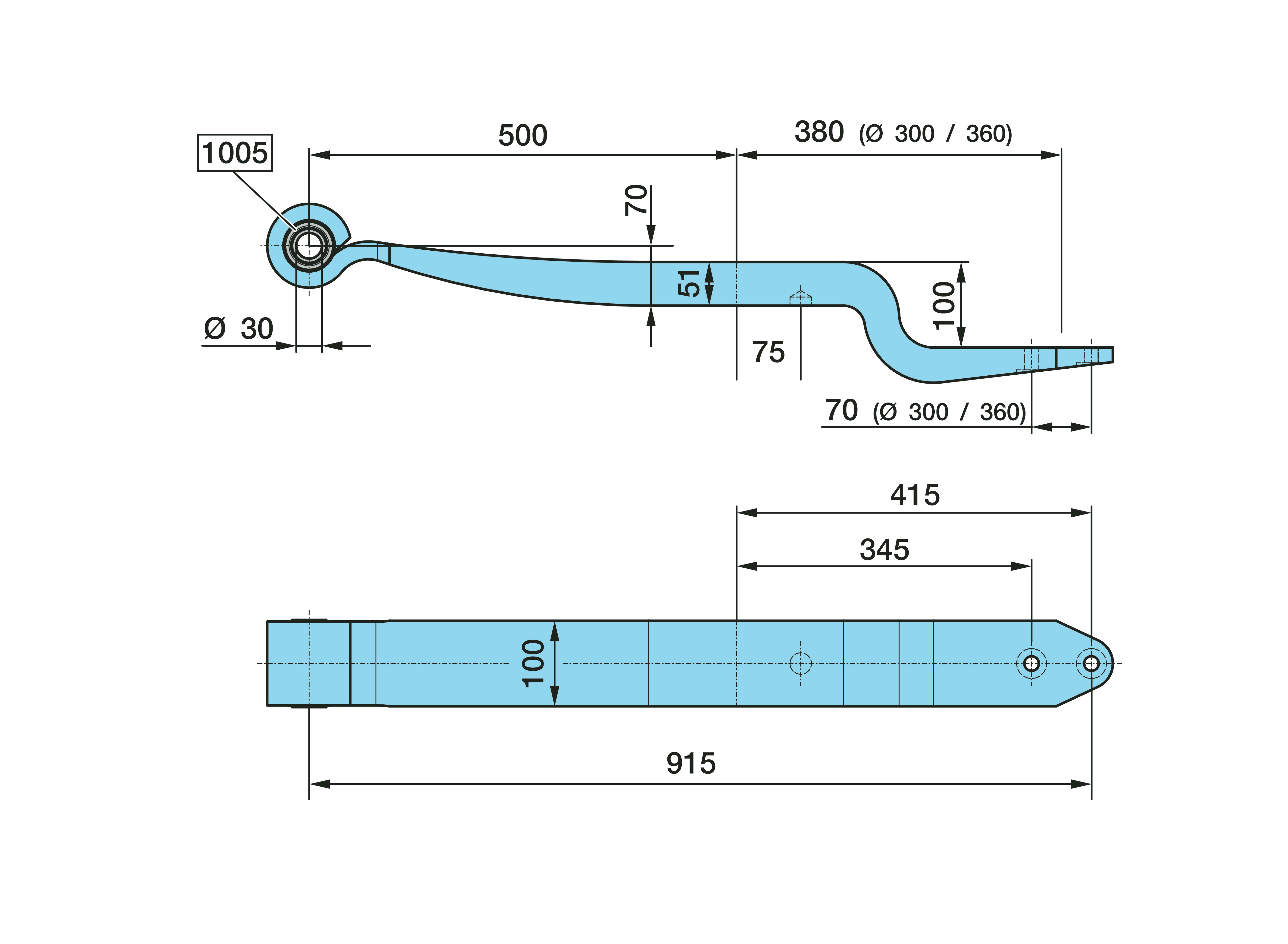 Dimension: Ø 30, 100, 1 x 51 / 100, L1 500 / 380