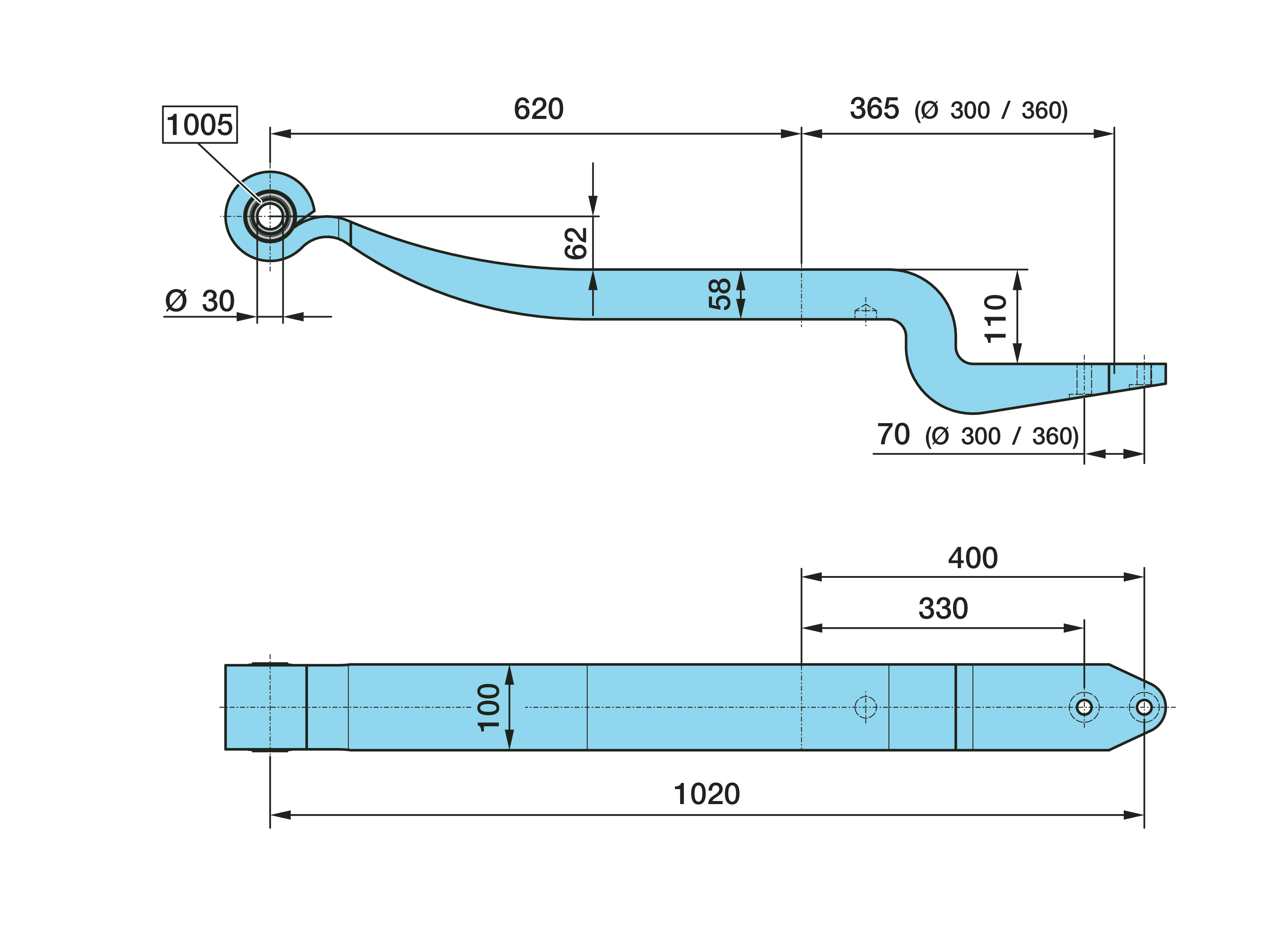 Dimension: Ø 30, 110, 1 x 58 / 100, L1 620 / 365