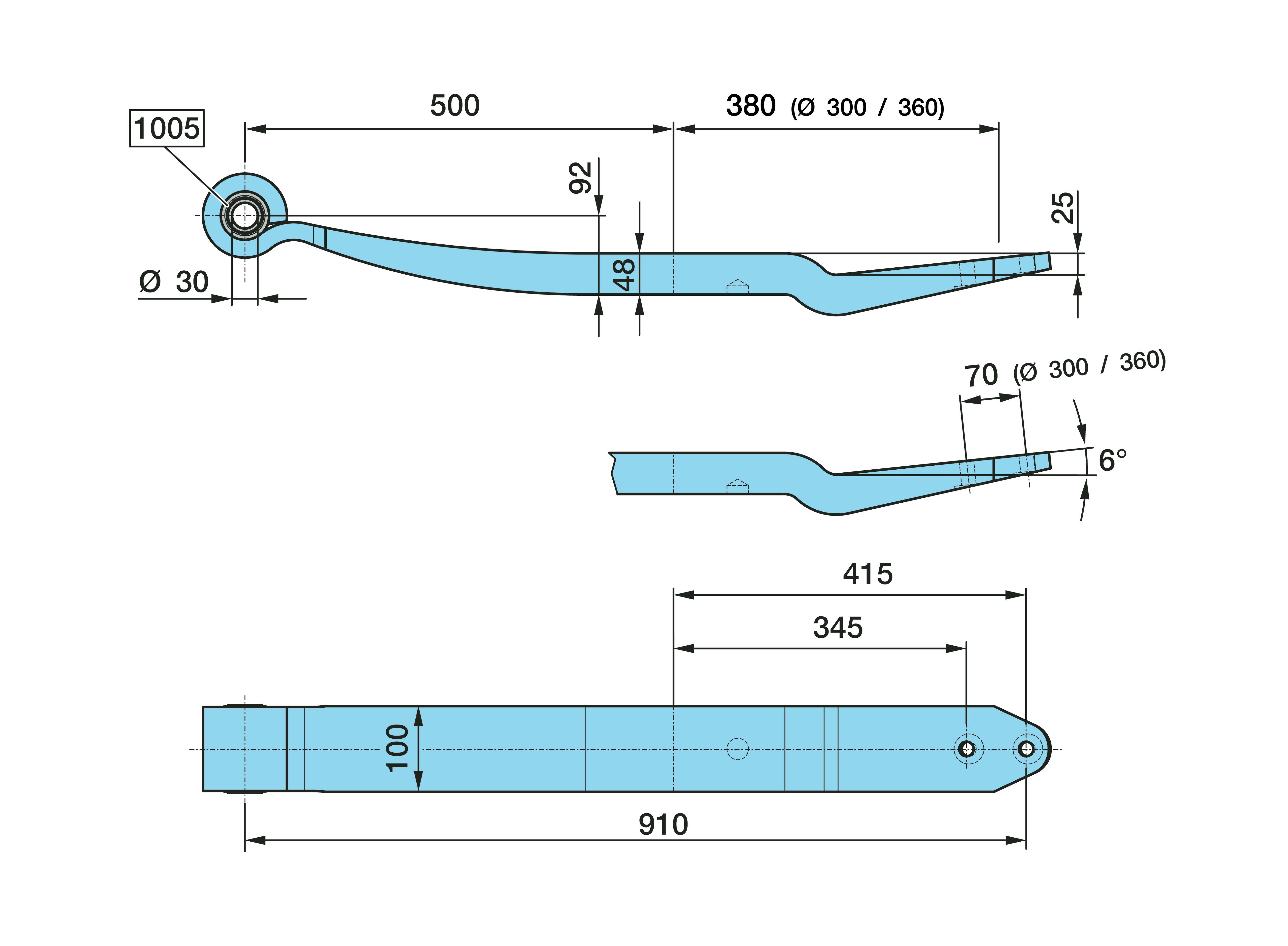 Dimension: Ø 30, 25, 1 x 48 / 100, L1 500 / 380