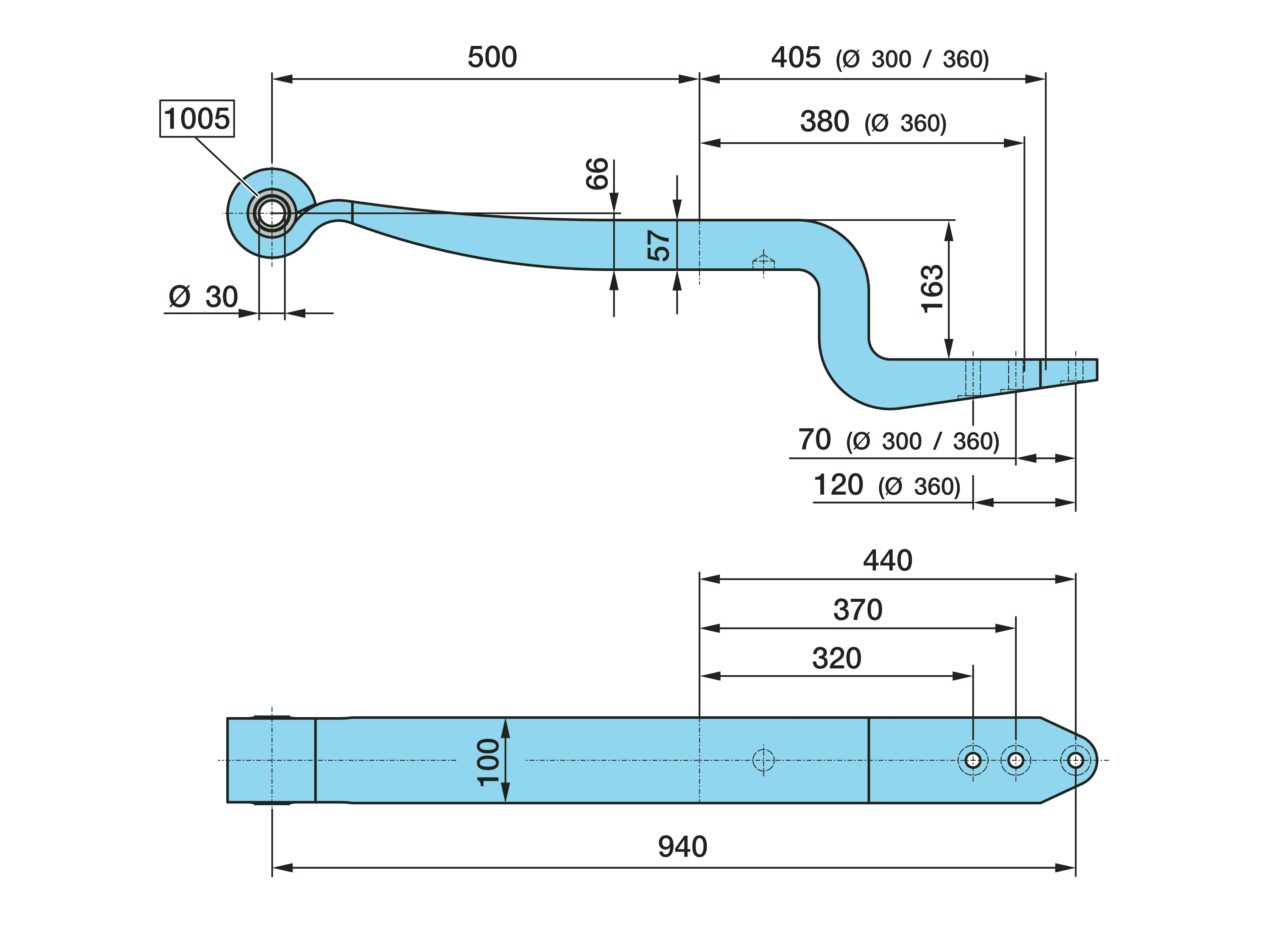 Dimension: Ø 30, 163, 1 x 57 / 100, L1 500 / 380/405