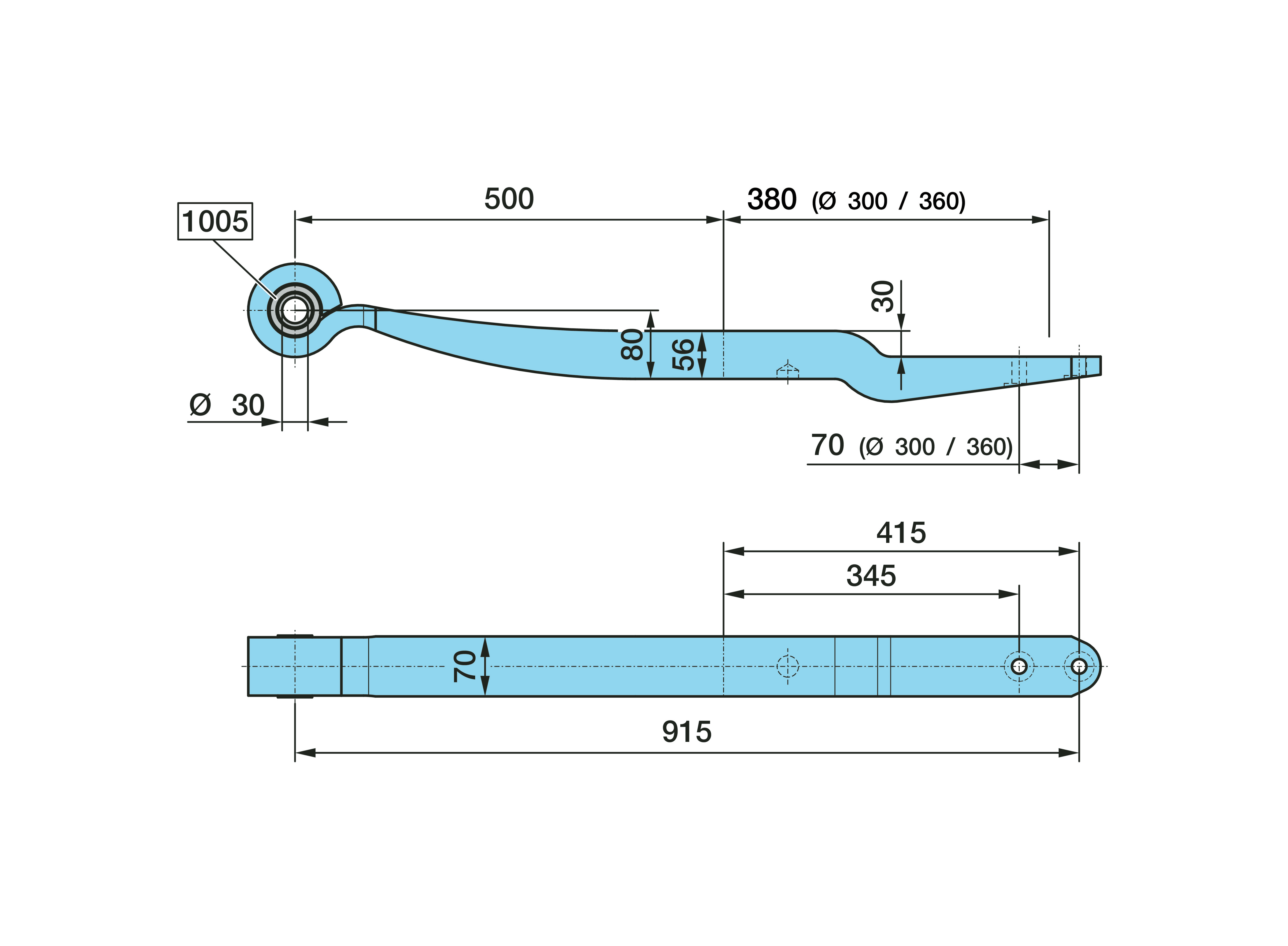 Dimension: Ø 30, 30, 1 x 56 / 70, L1 500 / 380