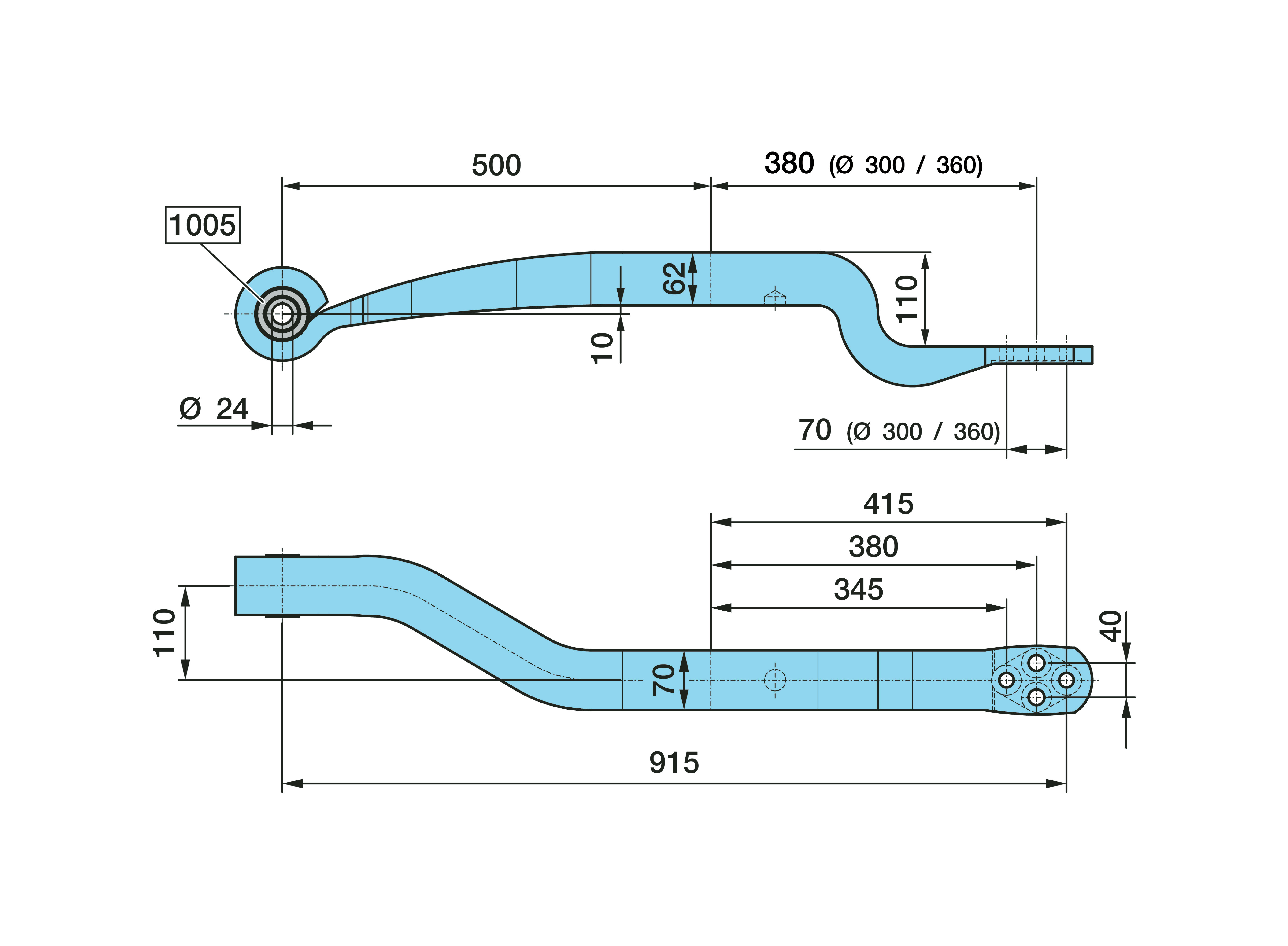 Dimension: Ø 24, 110, 1 x 62 / 70, L1 500 / 380