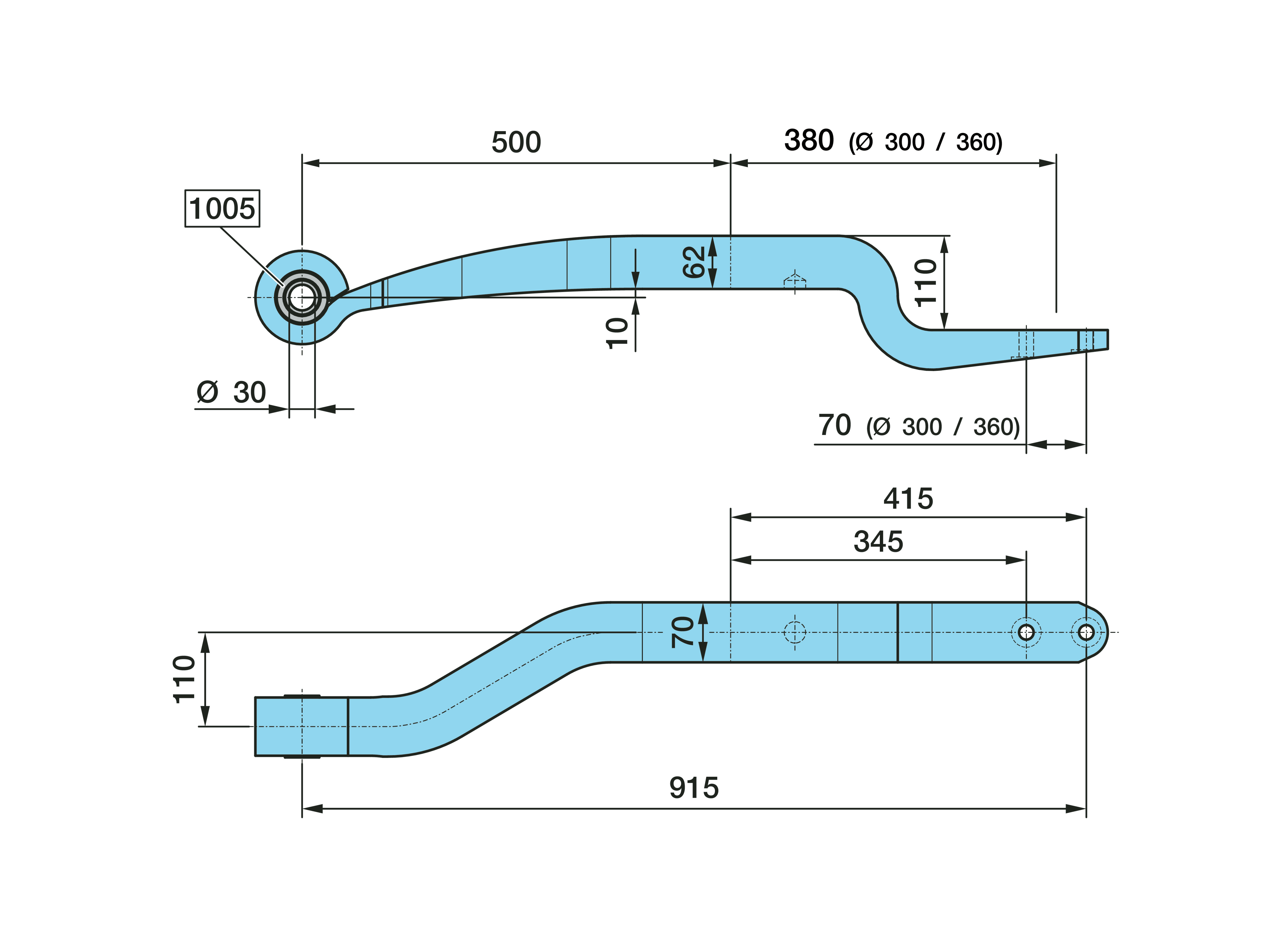Dimension: Ø 30, 110, 1 x 62 / 70, L1 500 / 380