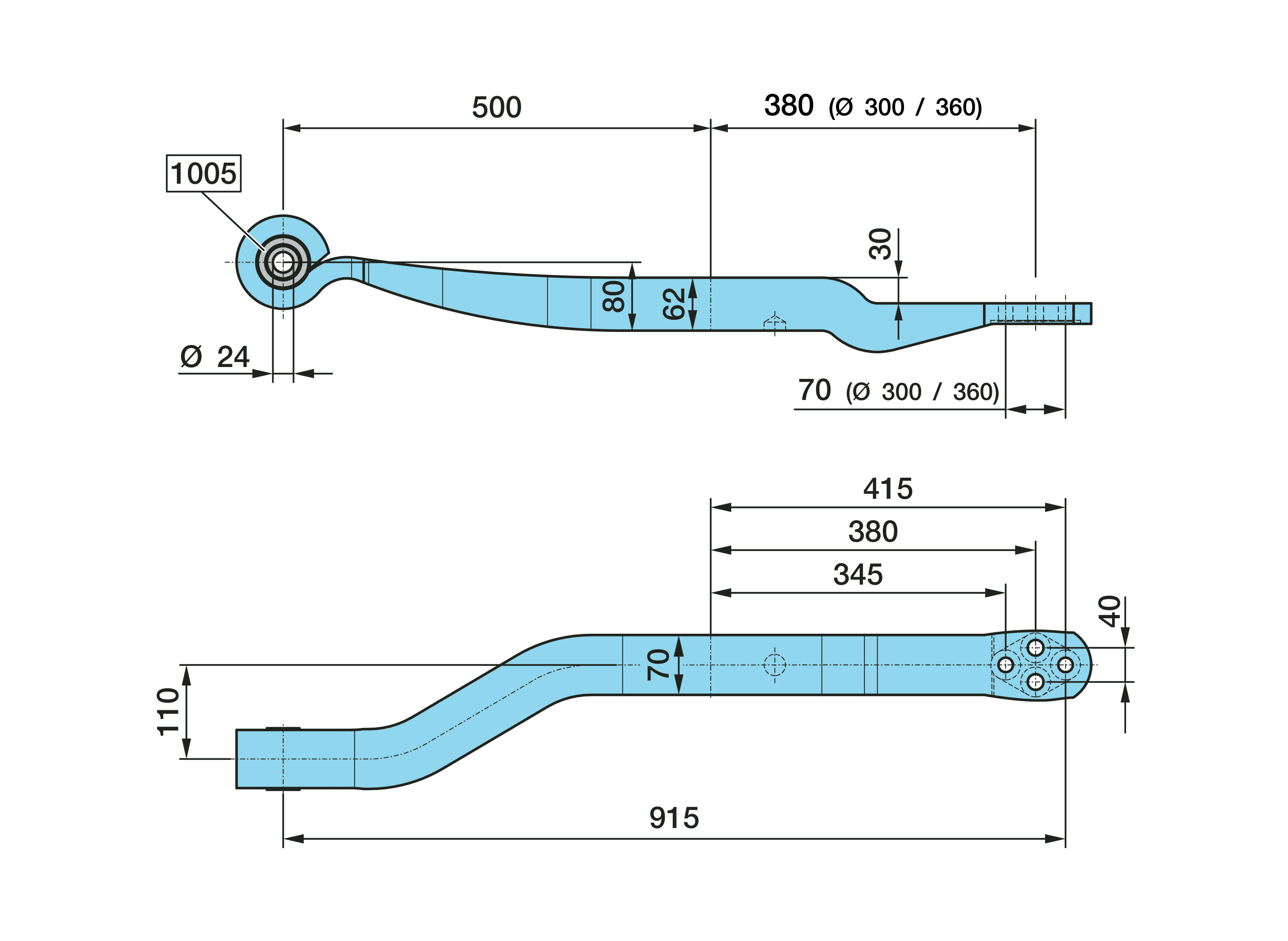 Dimension: Ø 24, 30, 1 x 62 / 70, L1 500 / 380