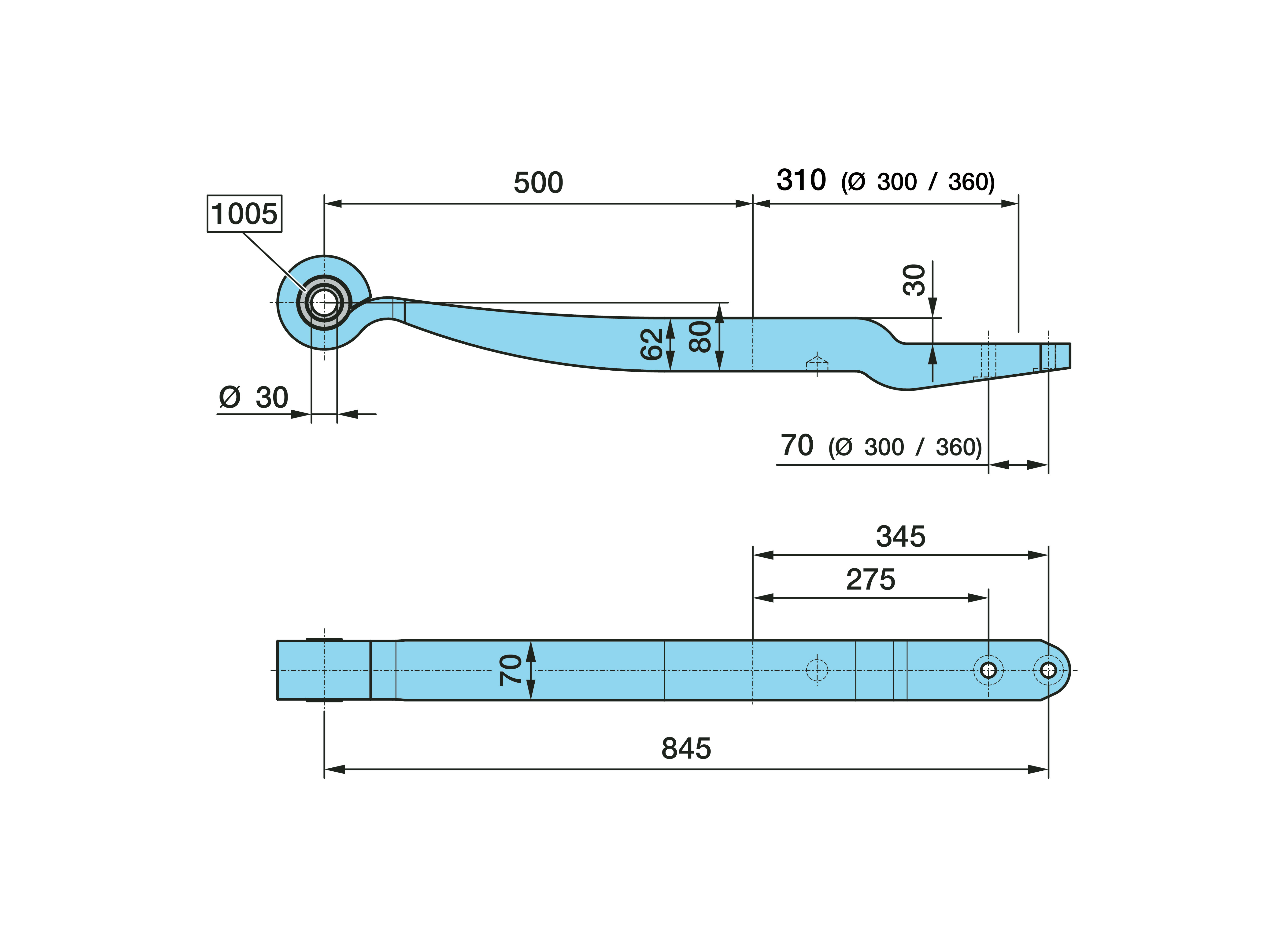 Dimension: Ø 30, 30, 1 x 62 / 70, L1 500 / 310