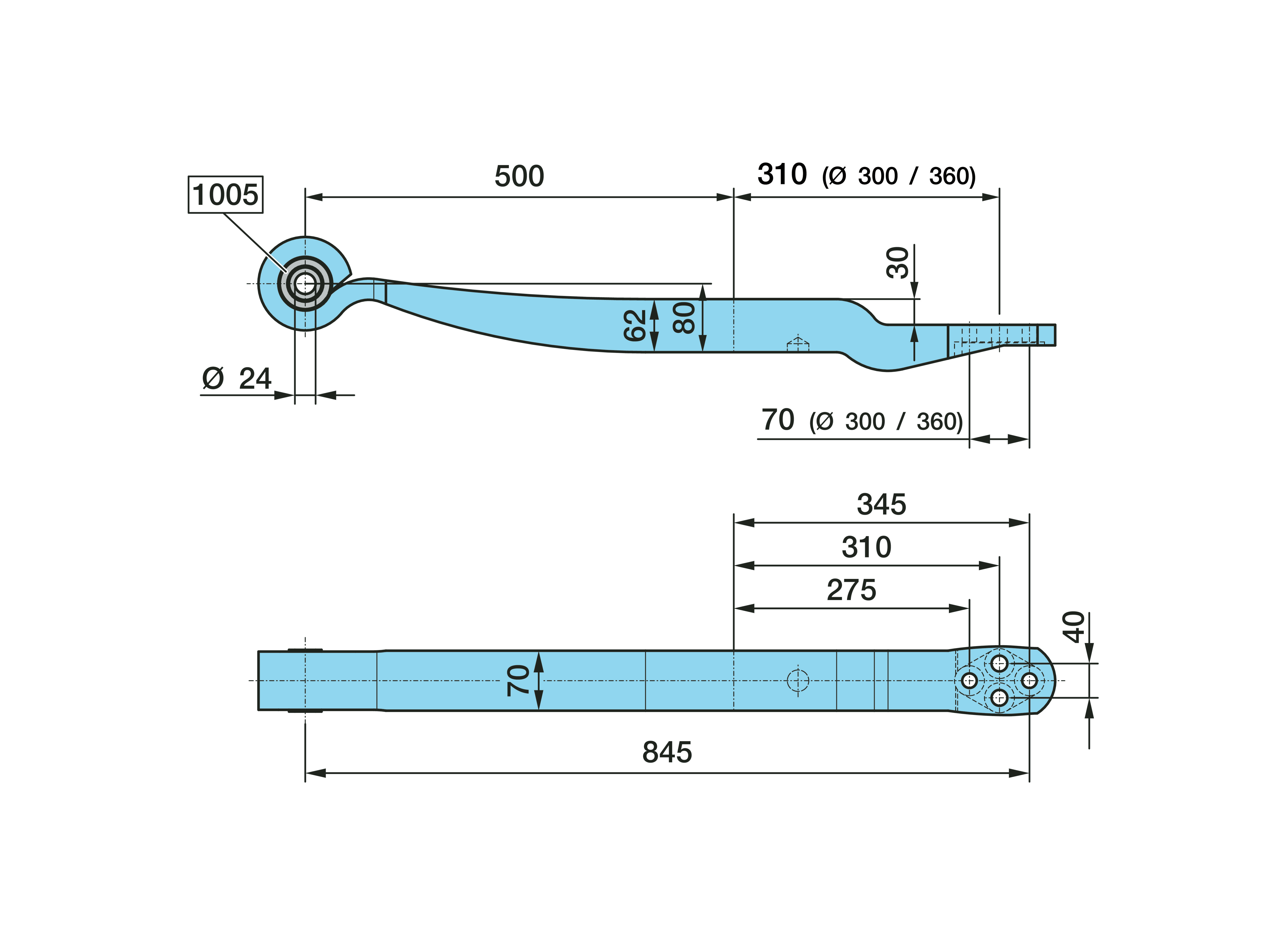 Dimension: Ø 24, 30, 1 x 62 / 70, L1 500 / 310