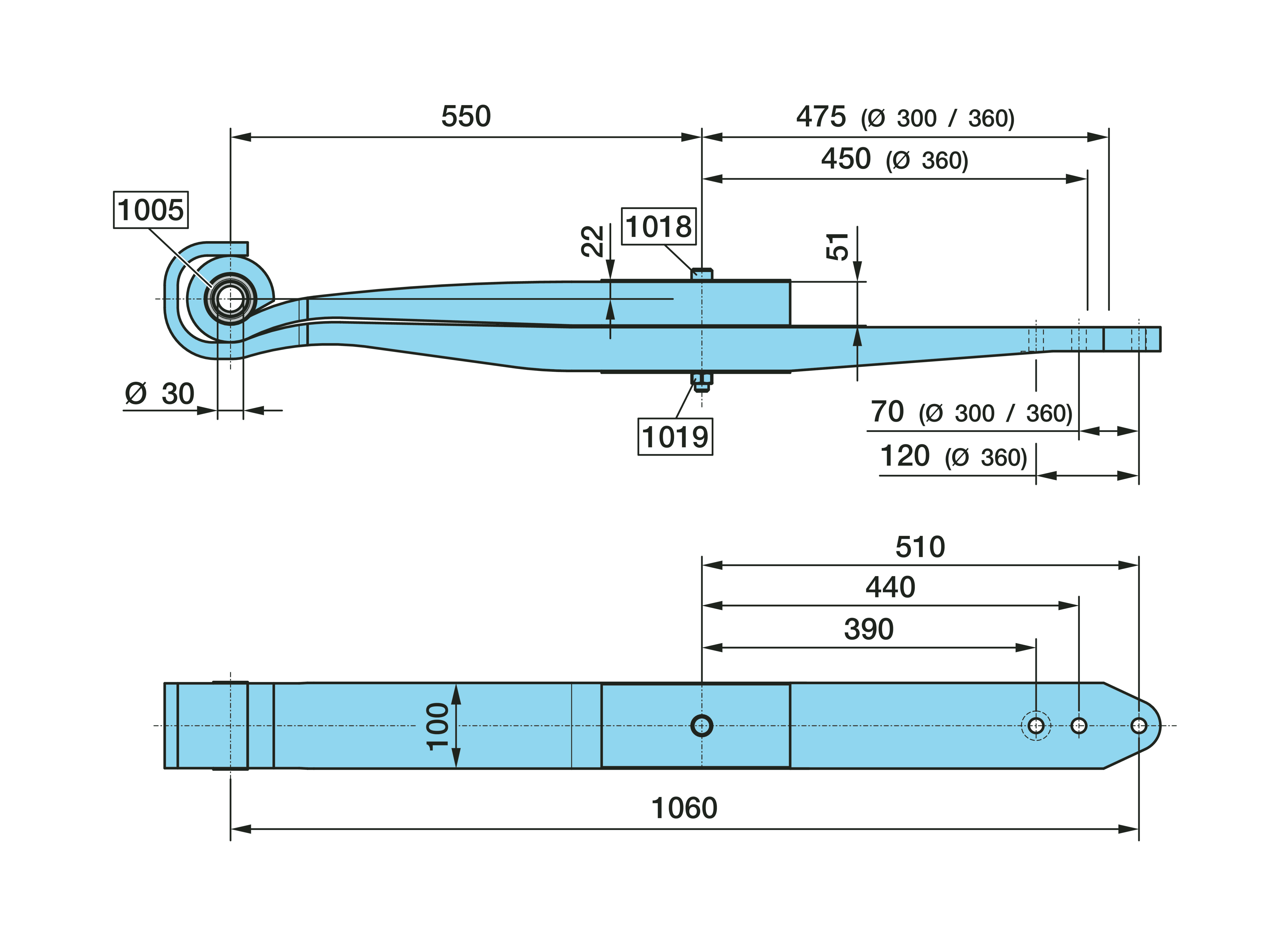 Dimension: Ø 30, 2 x 51 / 100, L1 550 / 450/475