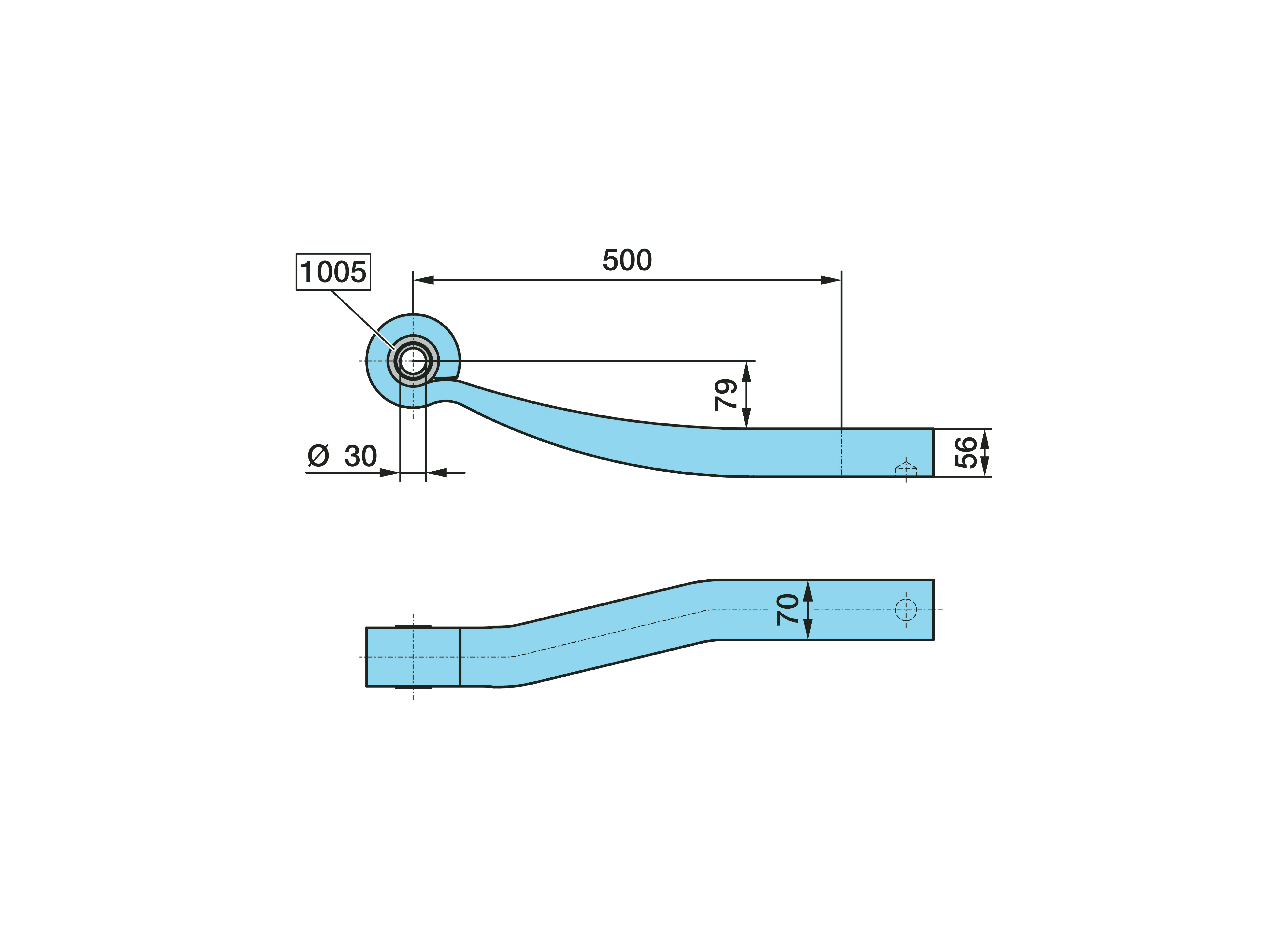Dimension: Ø 30, 1 x 56 / 70, L1 500 / ---