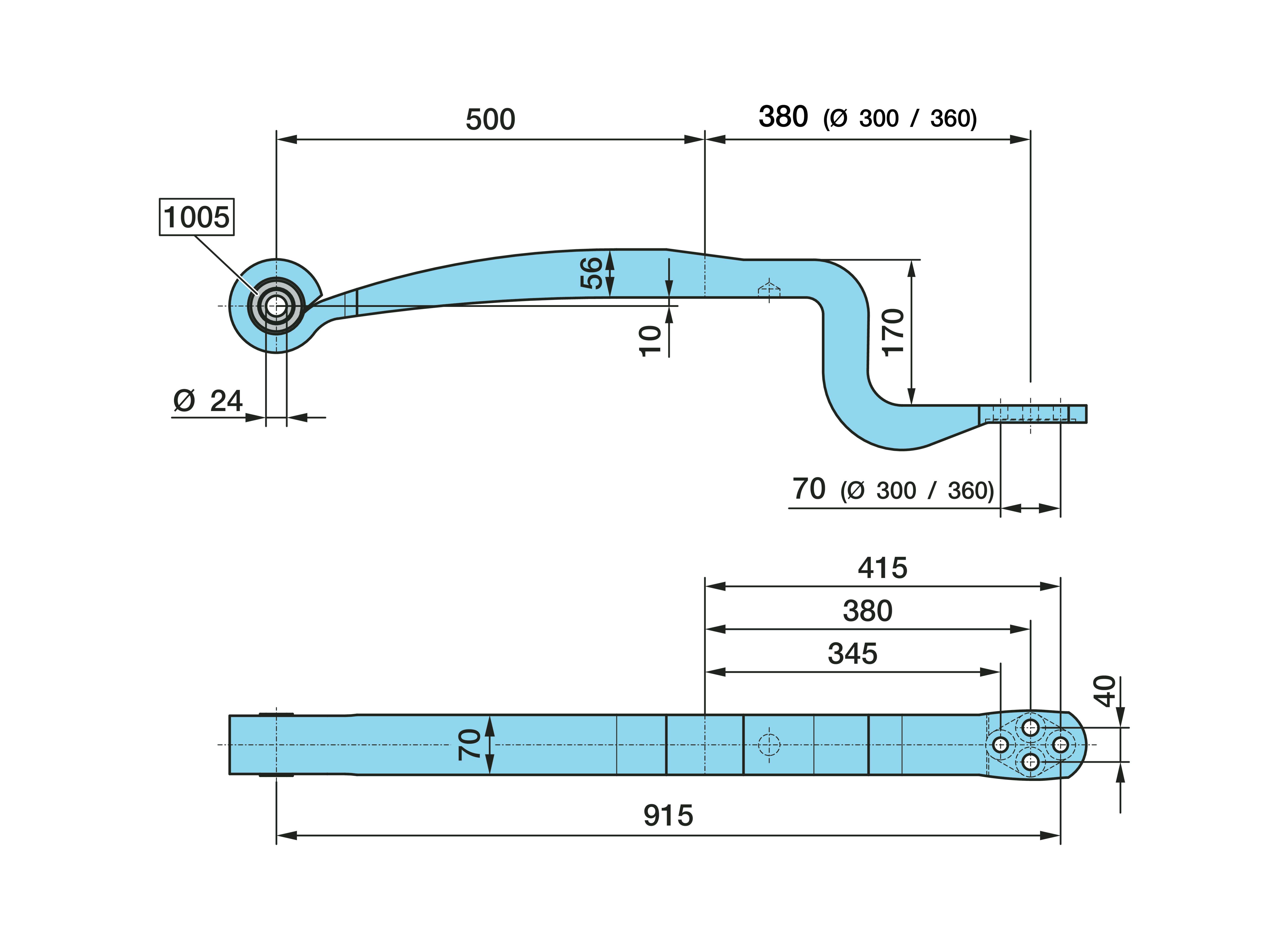 Dimension: Ø 24, 170, 1 x 56 / 70, L1 500 / 380