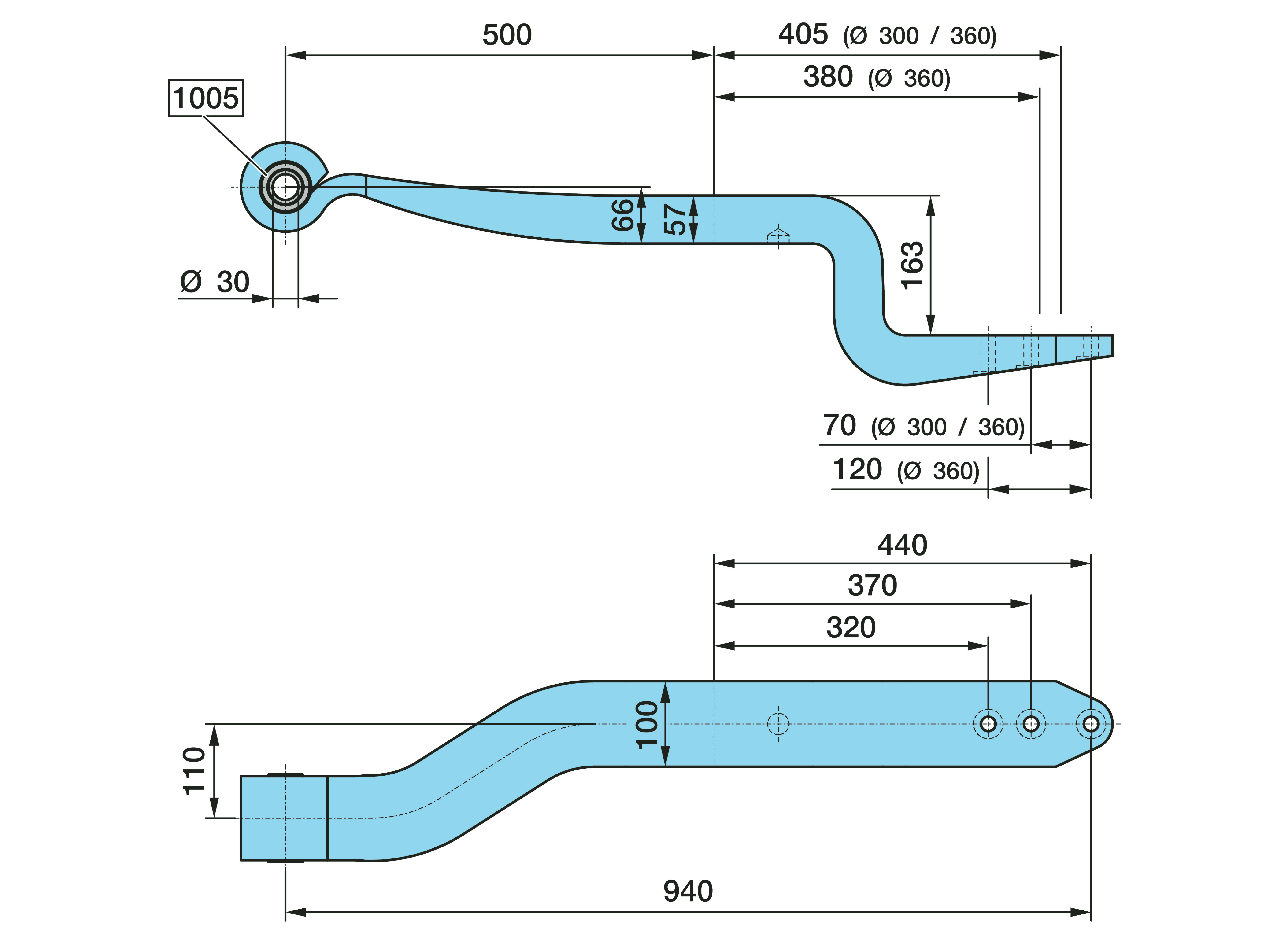 Dimension: Ø 30, 163, 1 x 57 / 100, L1 500 / 380