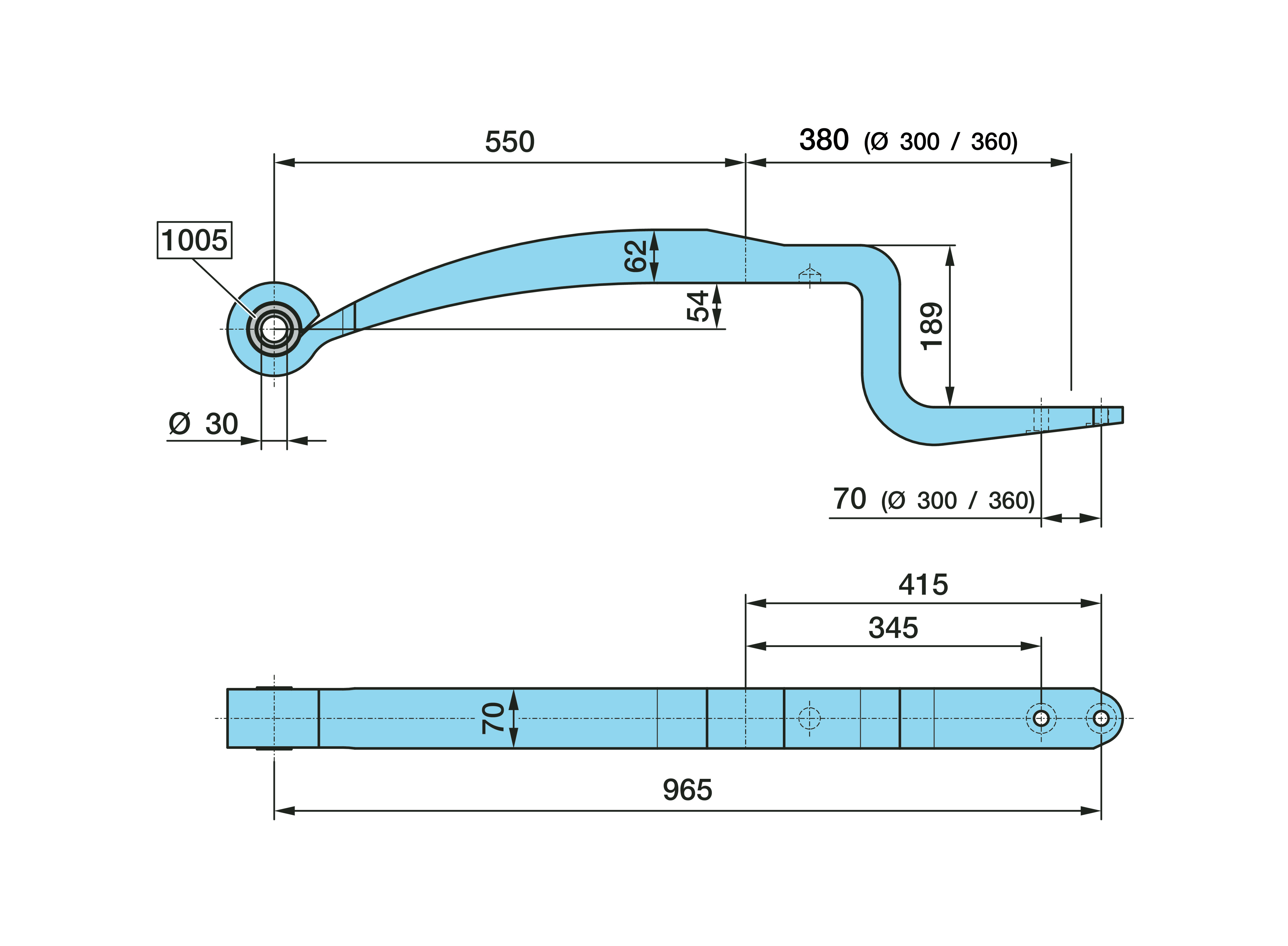 Dimension: Ø 30, 189, 1 x 62 / 70, L1 550 / 380