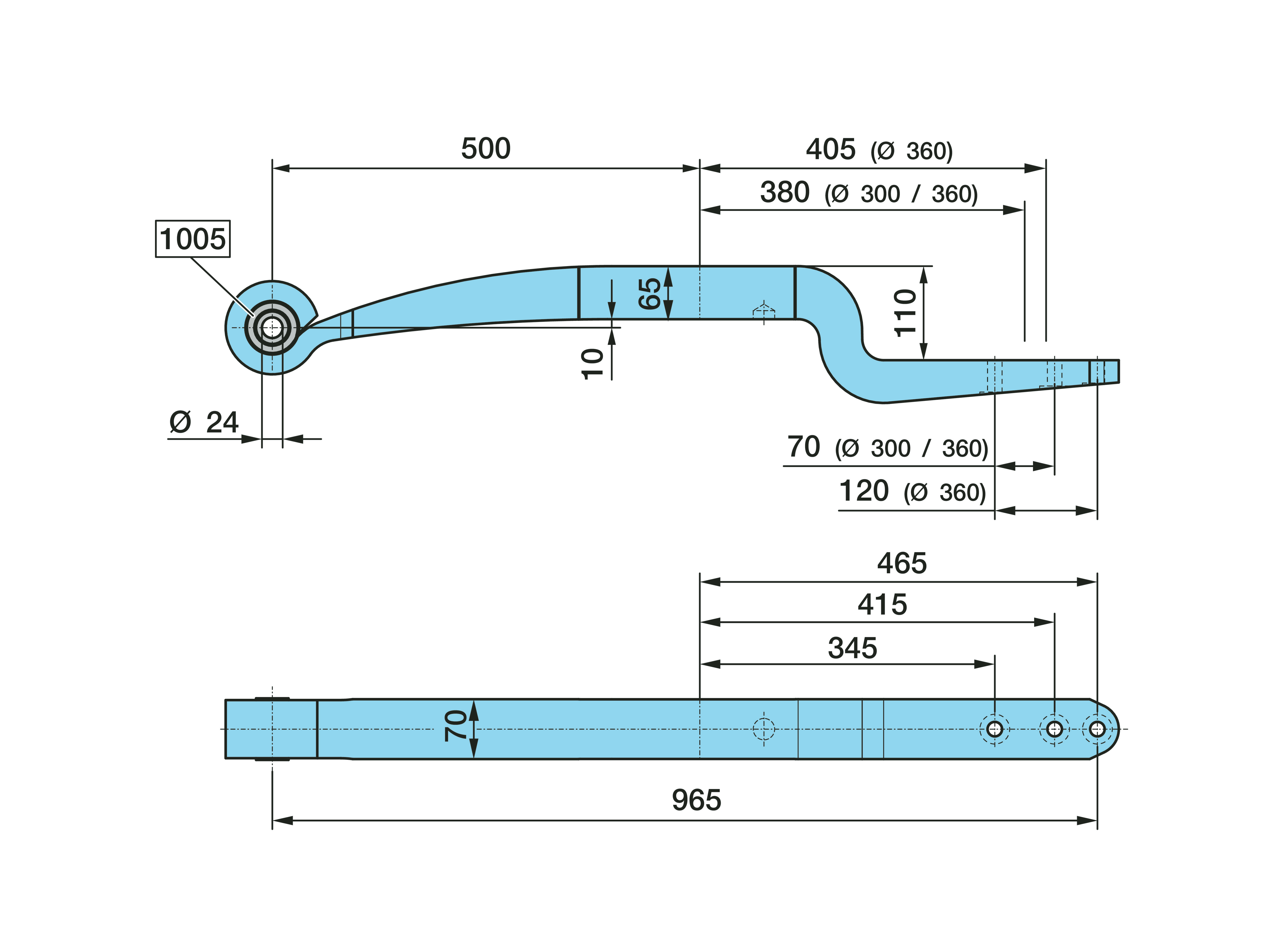 Dimension: Ø 24, 110, 1 x 65 / 70, L1 500 / 380/405