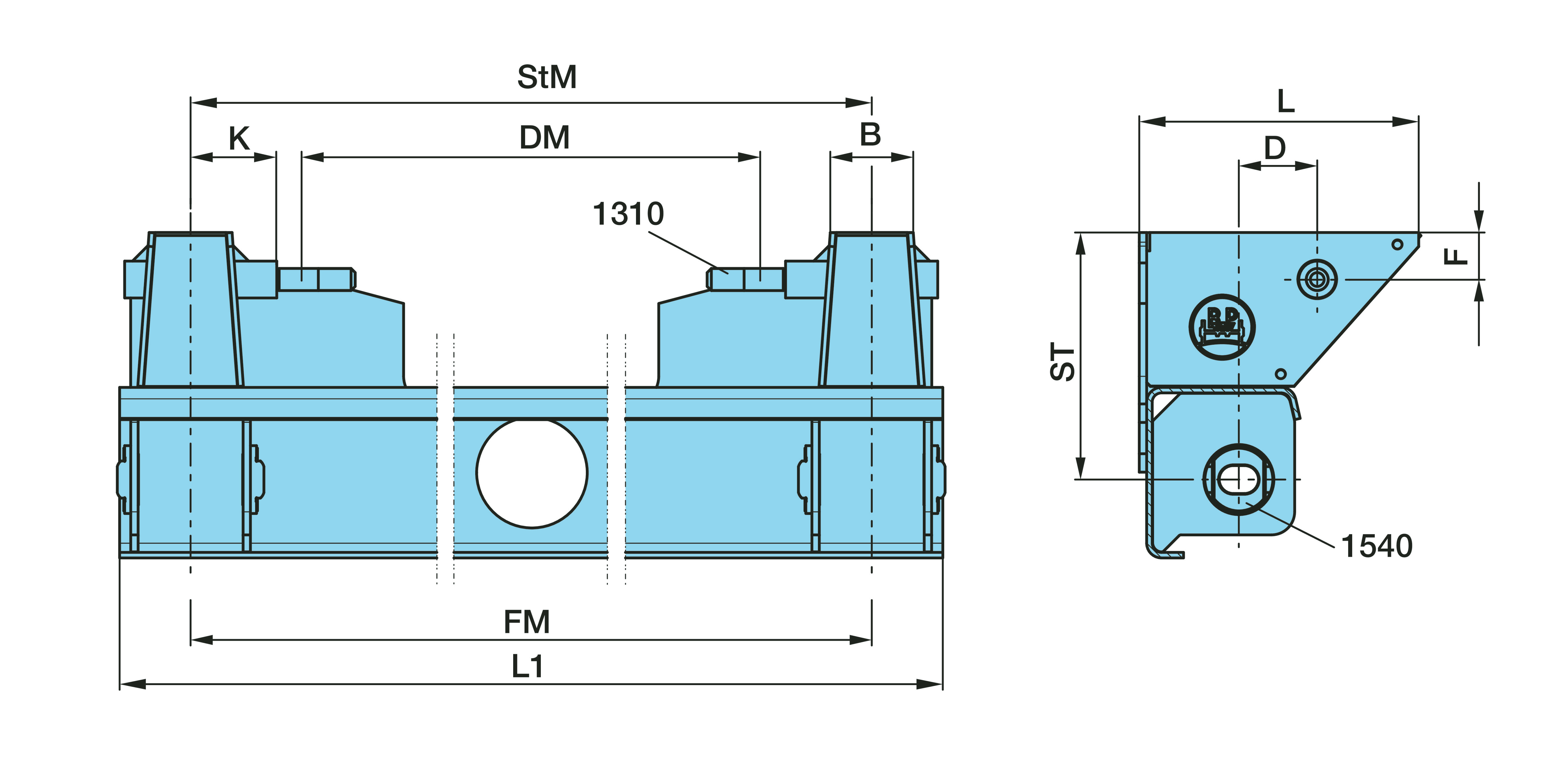 Dimension: Ø 30 / ST 268 / FM 1300 / B 90 / D 85 / F 51 / DM