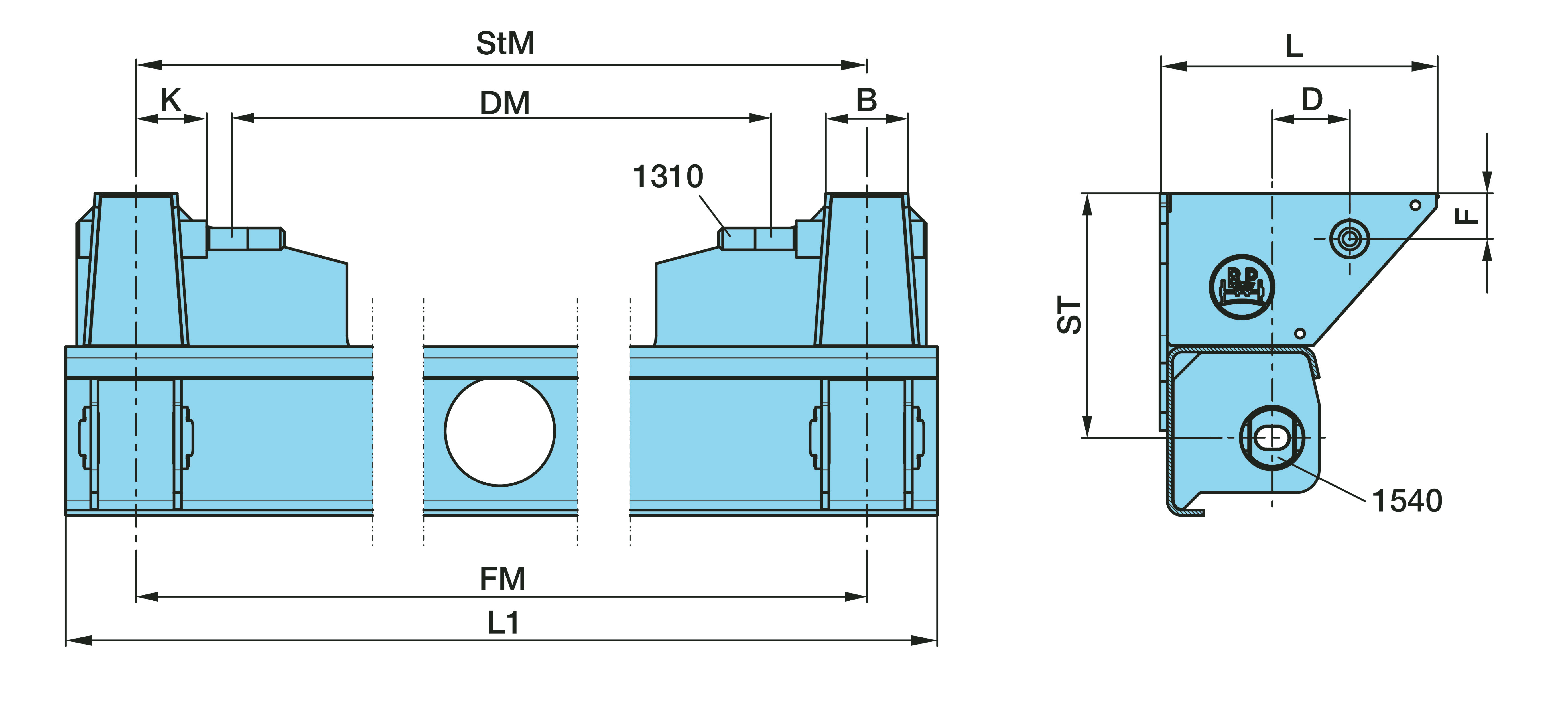 Dimension: Ø 24 / ST 268 / FM 1300 / B 90 / D 85 / F 50 / DM
