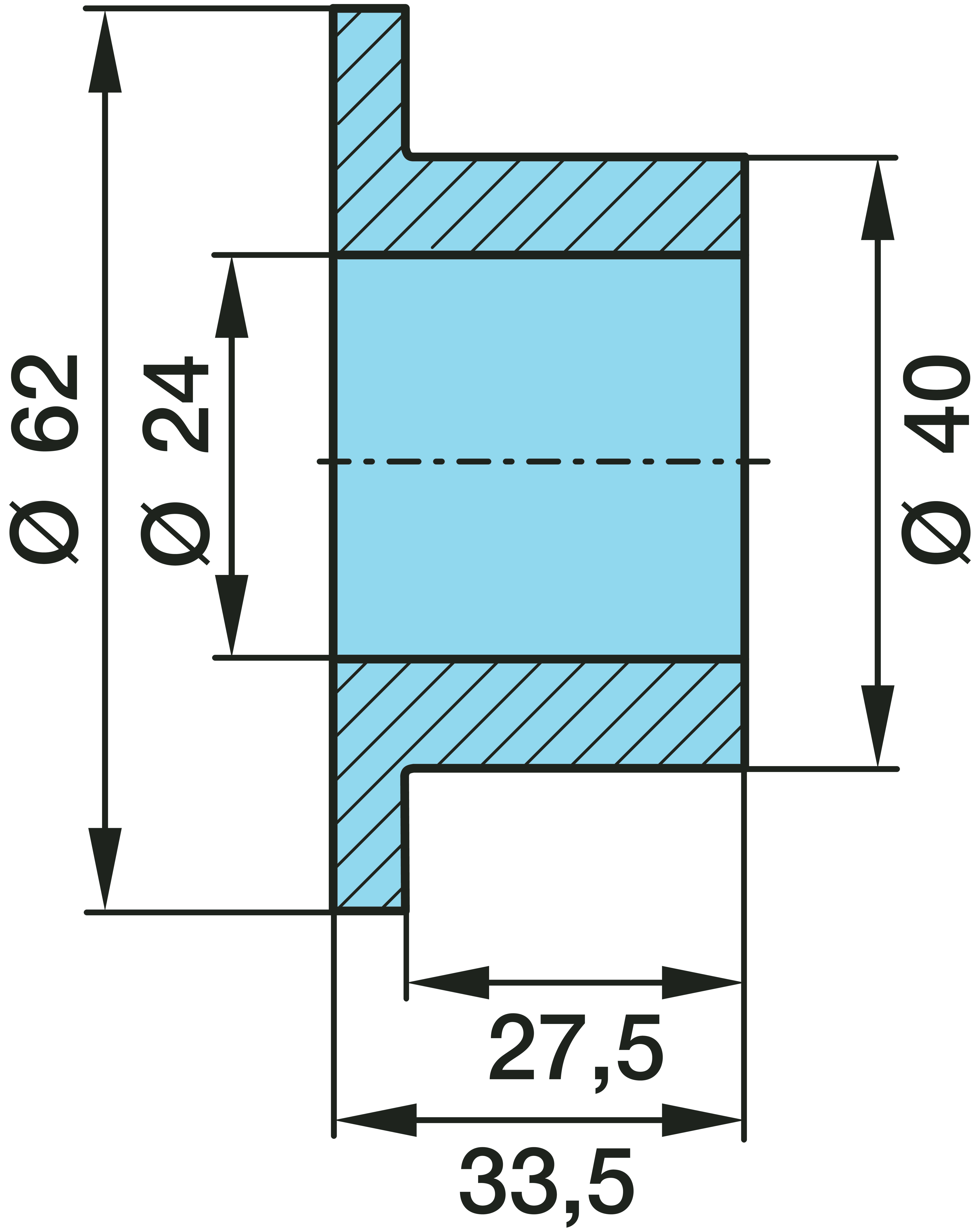 Dimension: Ø 24 / 40 / 62 x 33,5