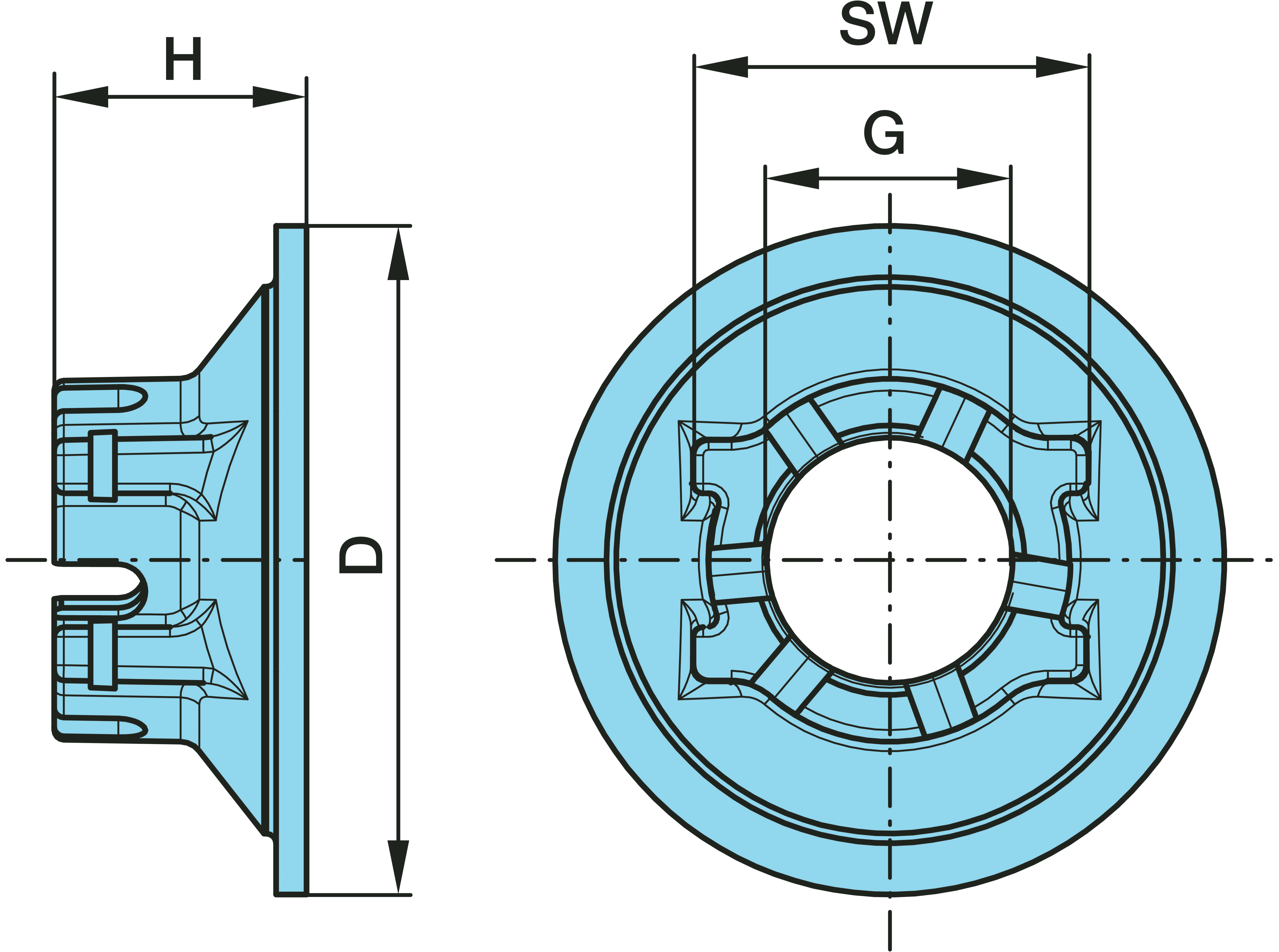 Dimension: M 52 x 2 / Ø 120 / SW 80