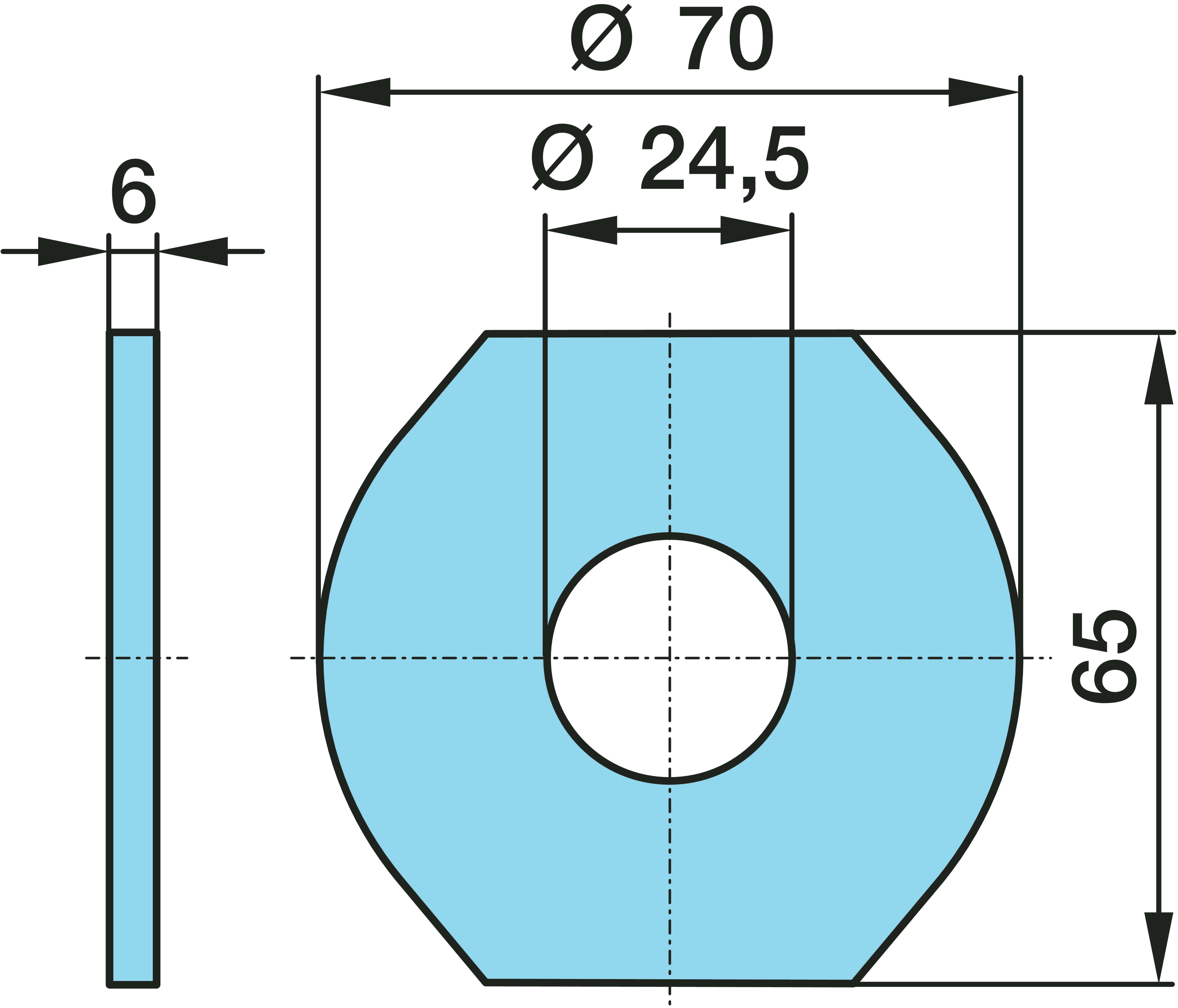03.320.24.05.0 Välilevy1 ALUSLEVY 24,5/65/70X6
