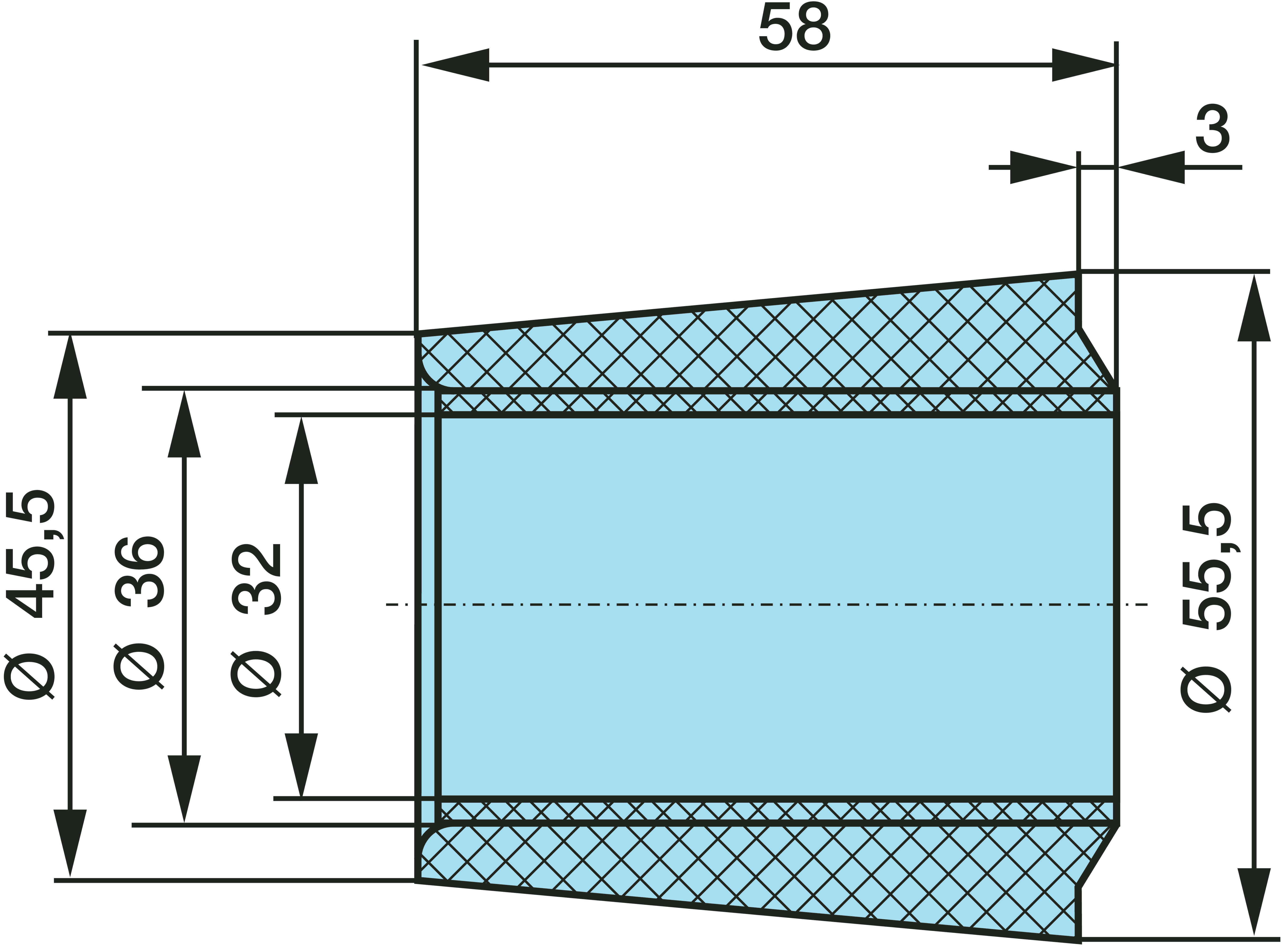 Dimension: Ø 32 / 36 / 45,5 / 55,5 x 58