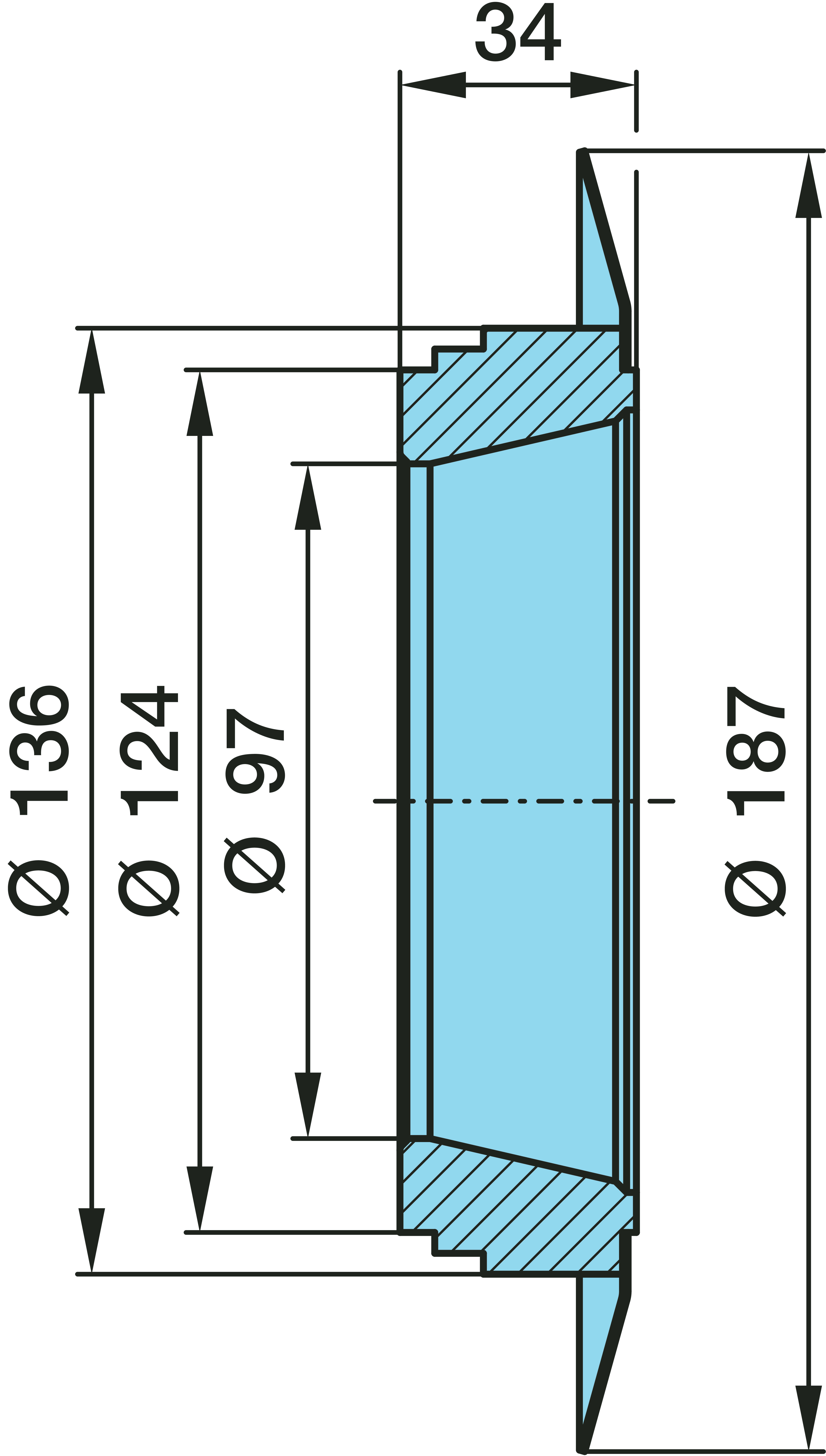 Dimension: Ø 97 / 124 / 136 / 187 x 34