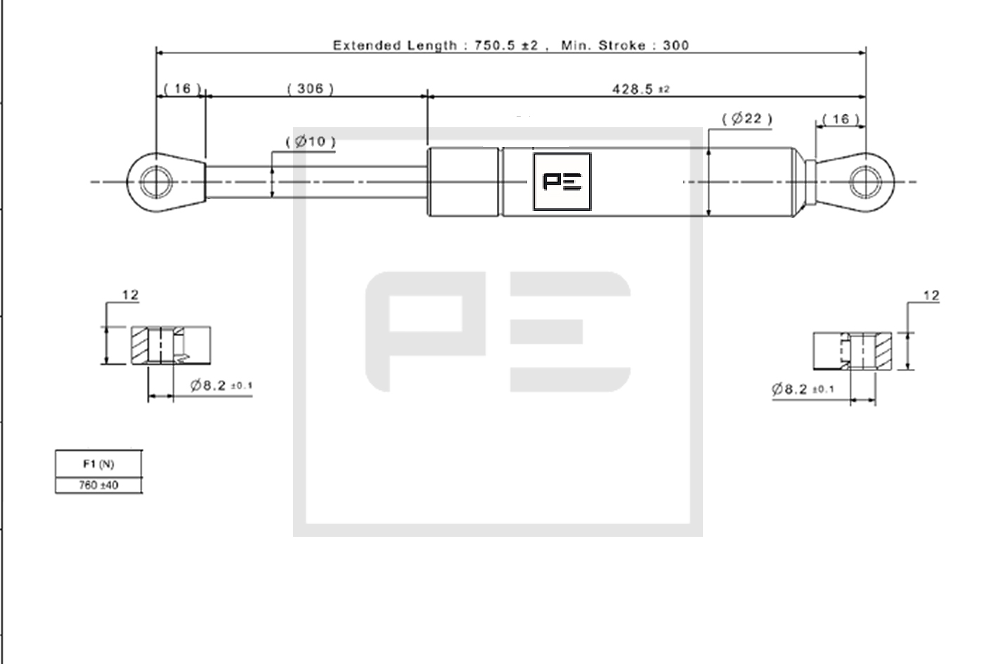 080.094-00A Kaasujousi1 KAASUJOUSI 750,5 x 300 x 760N