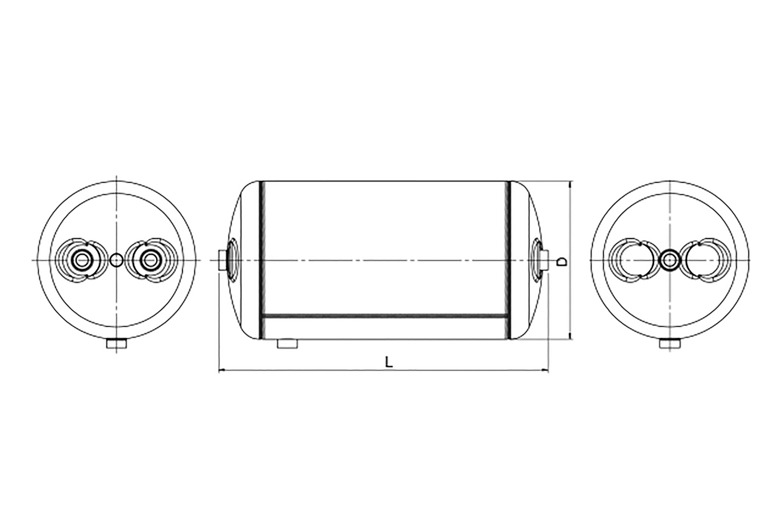 146.500-80A Ilmasäiliö, paineilmalaite1 ILMASÄILIÖ 30L D=276 L=575 TERÄS VL poistoreikä päädyssä