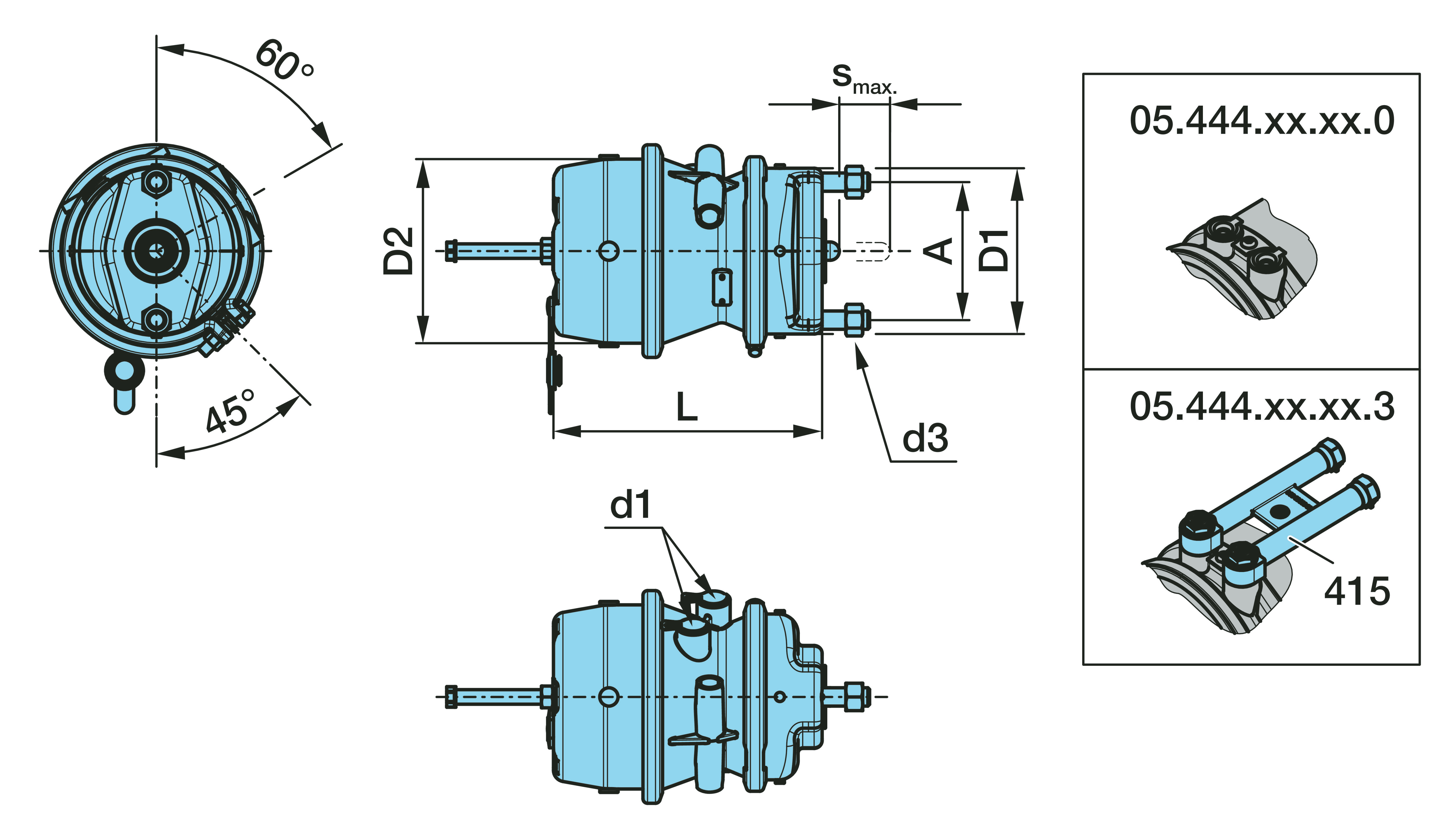 05.444.40.01.0 Jousikuormitettu sylinteri1 JOUSIJARRUS.16/24"R K/K Levyjarrulle