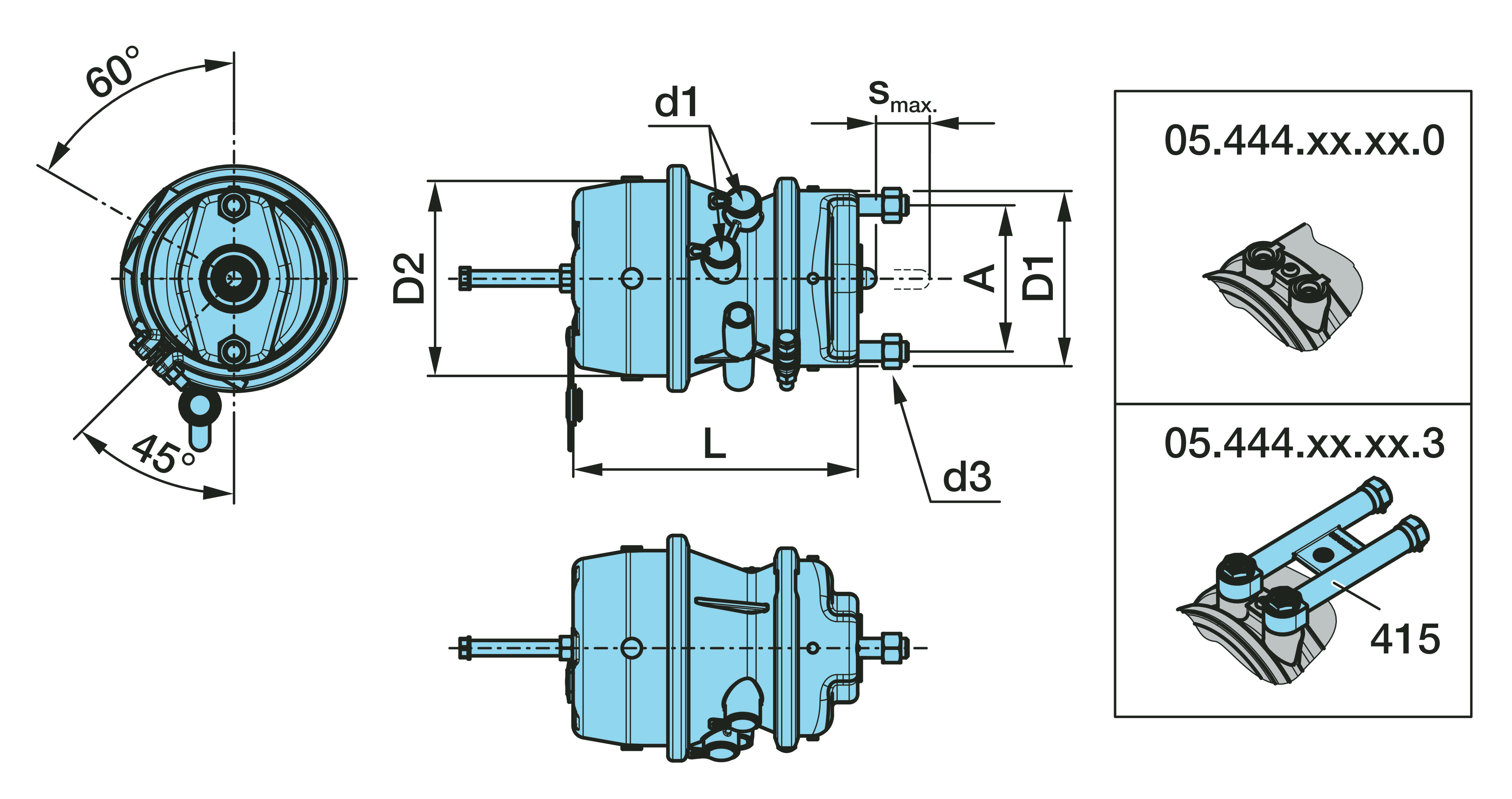 05.444.40.02.0 Jousikuormitettu sylinteri1 JOUSIJARRUS.16/24"L K/K Levyjarrulle