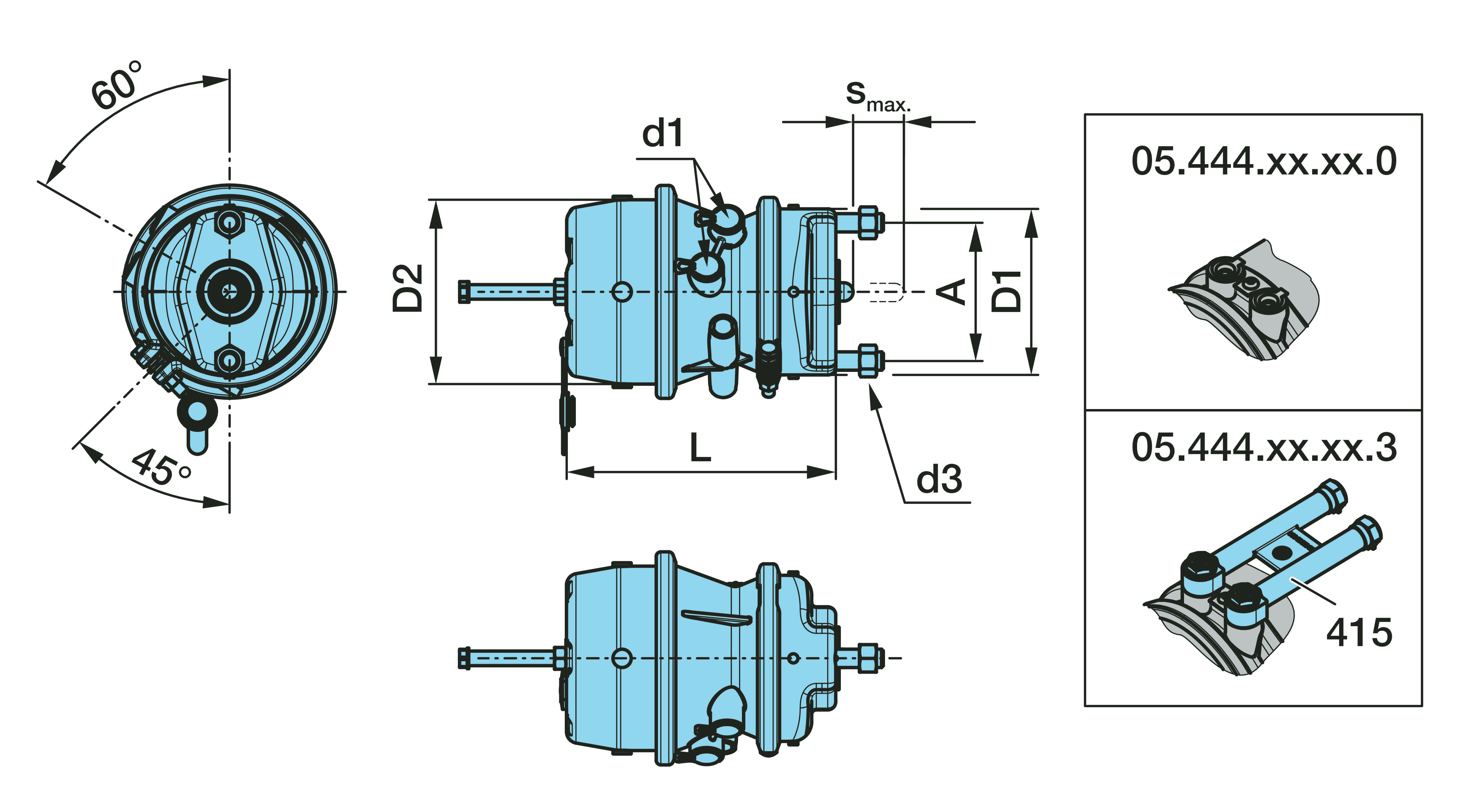 0544439020 Jousikuormitettu sylinteri1 JOUSIJARRUSYLINTERI 15/24"L K/ Levyjarrulle