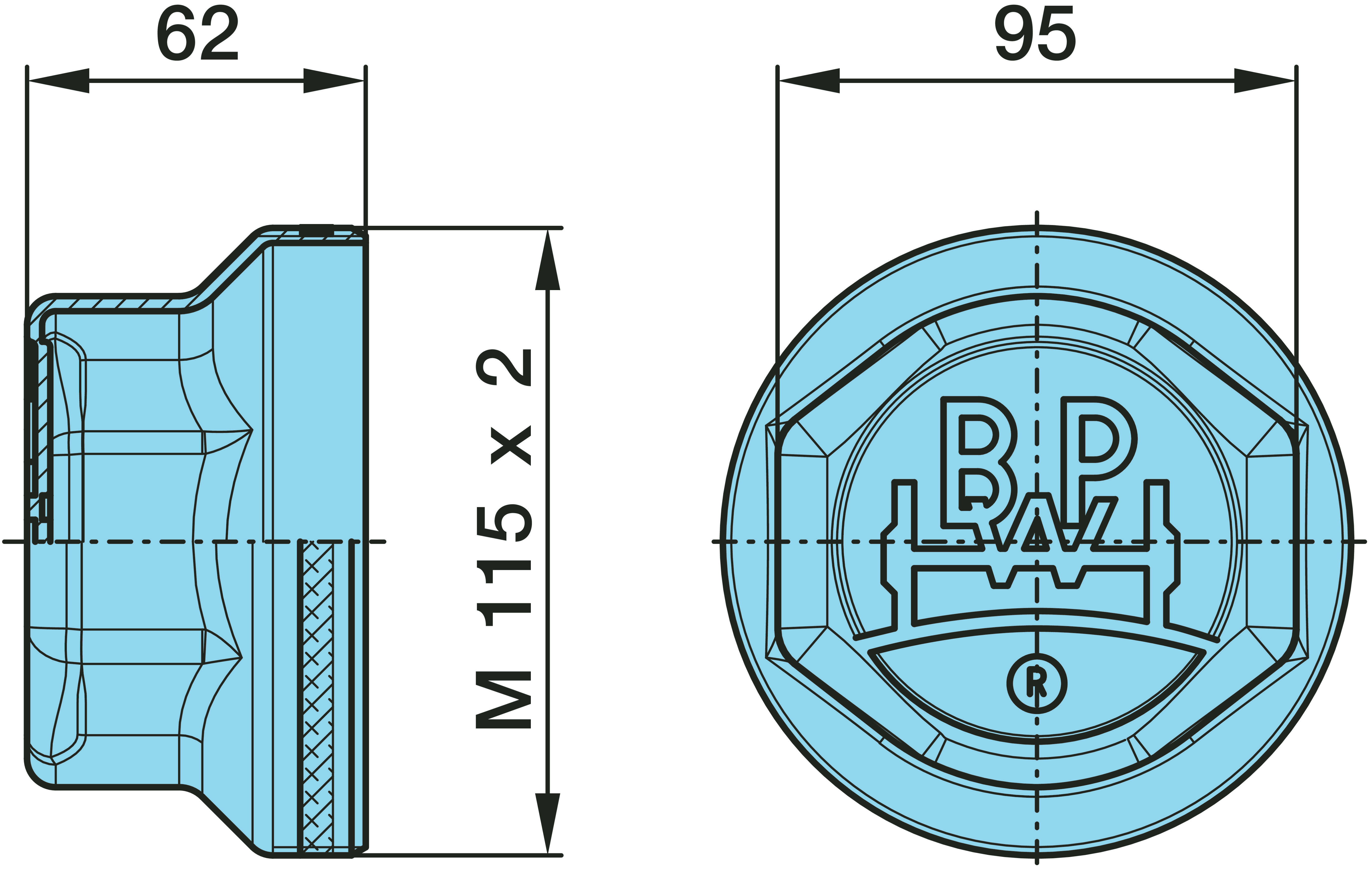Dimension: M 115 x 2 / H 62 / SW 95 / BPW