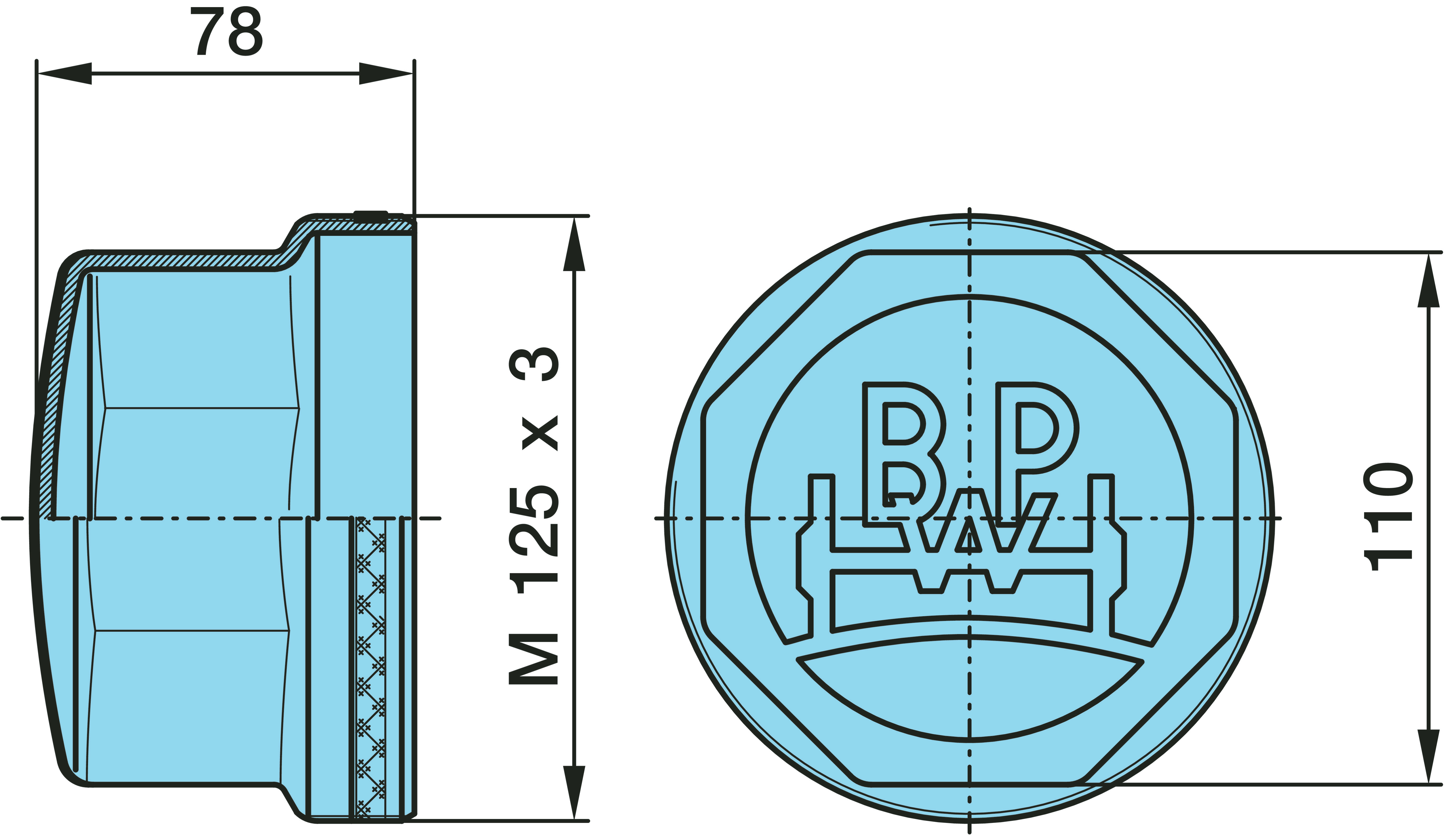 Dimension: M 125 x 3 / H 78 / SW 110 / 8kt.