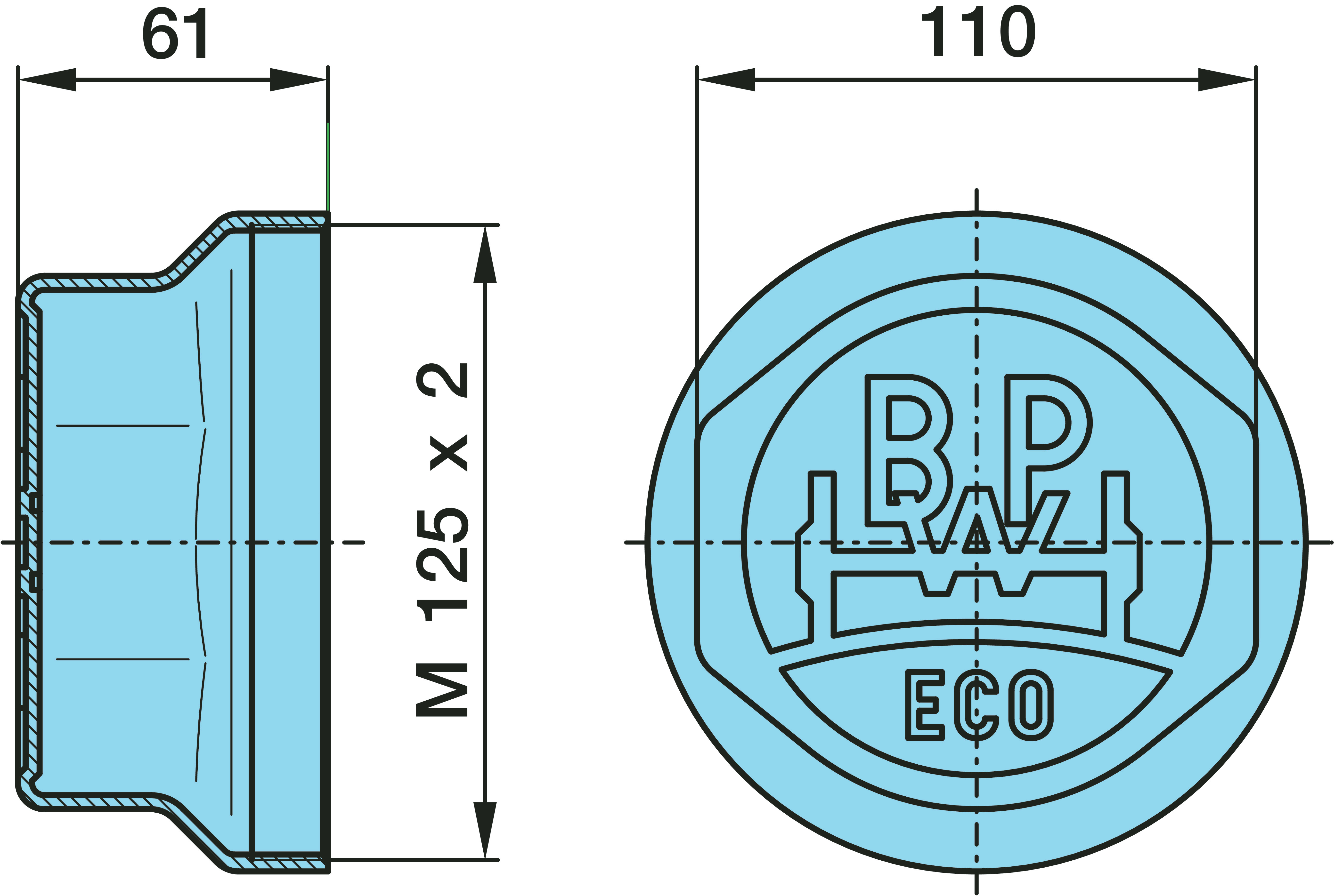 Dimension: M 125 x 2 / H 61 / SW 110 / BPW