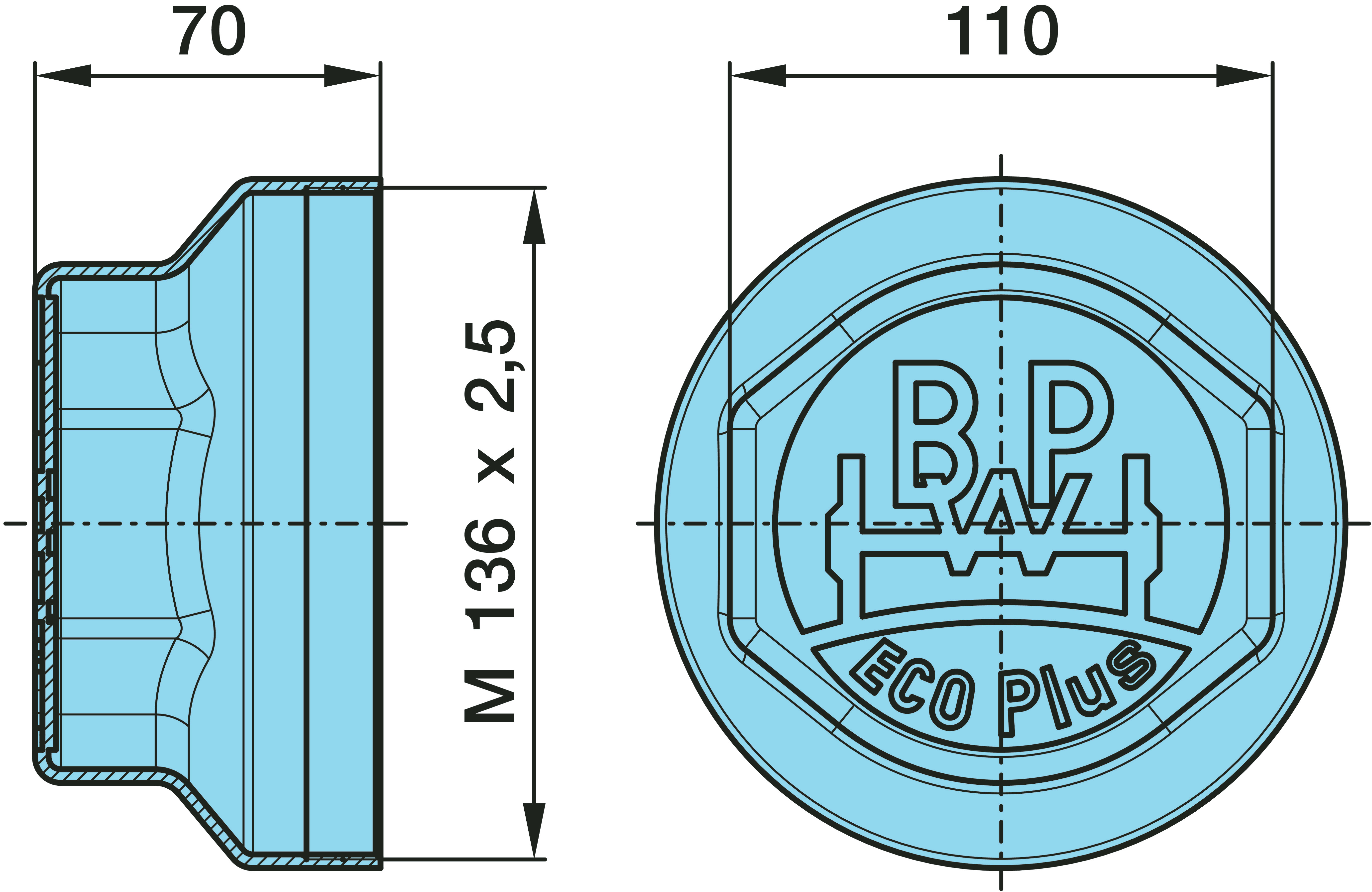 Dimension: M 136 x 2,5 / H 70 / SW 110 / BPW