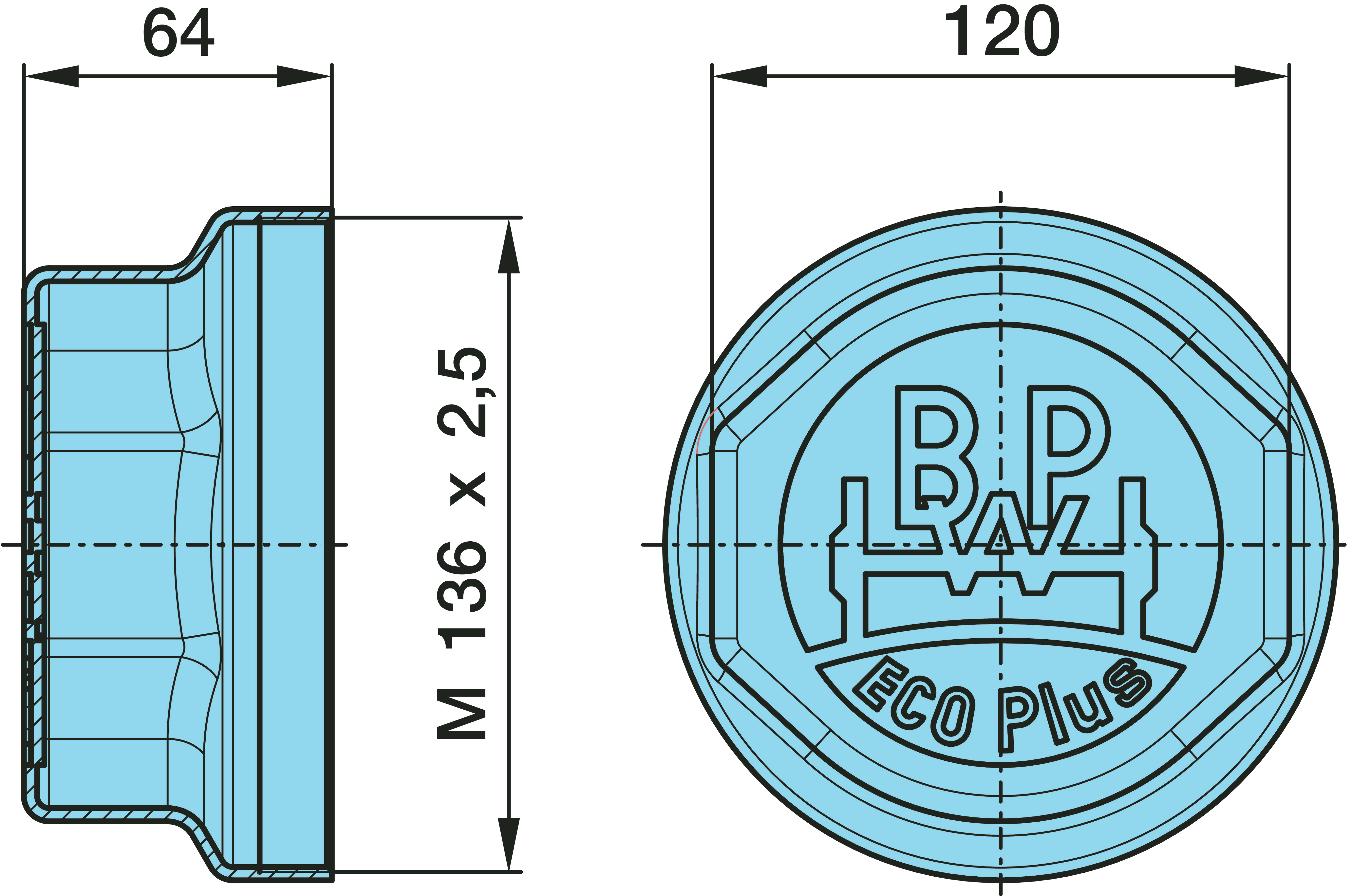 Dimension: M 136 x 2,5 / H 64 / SW 120 / BPW