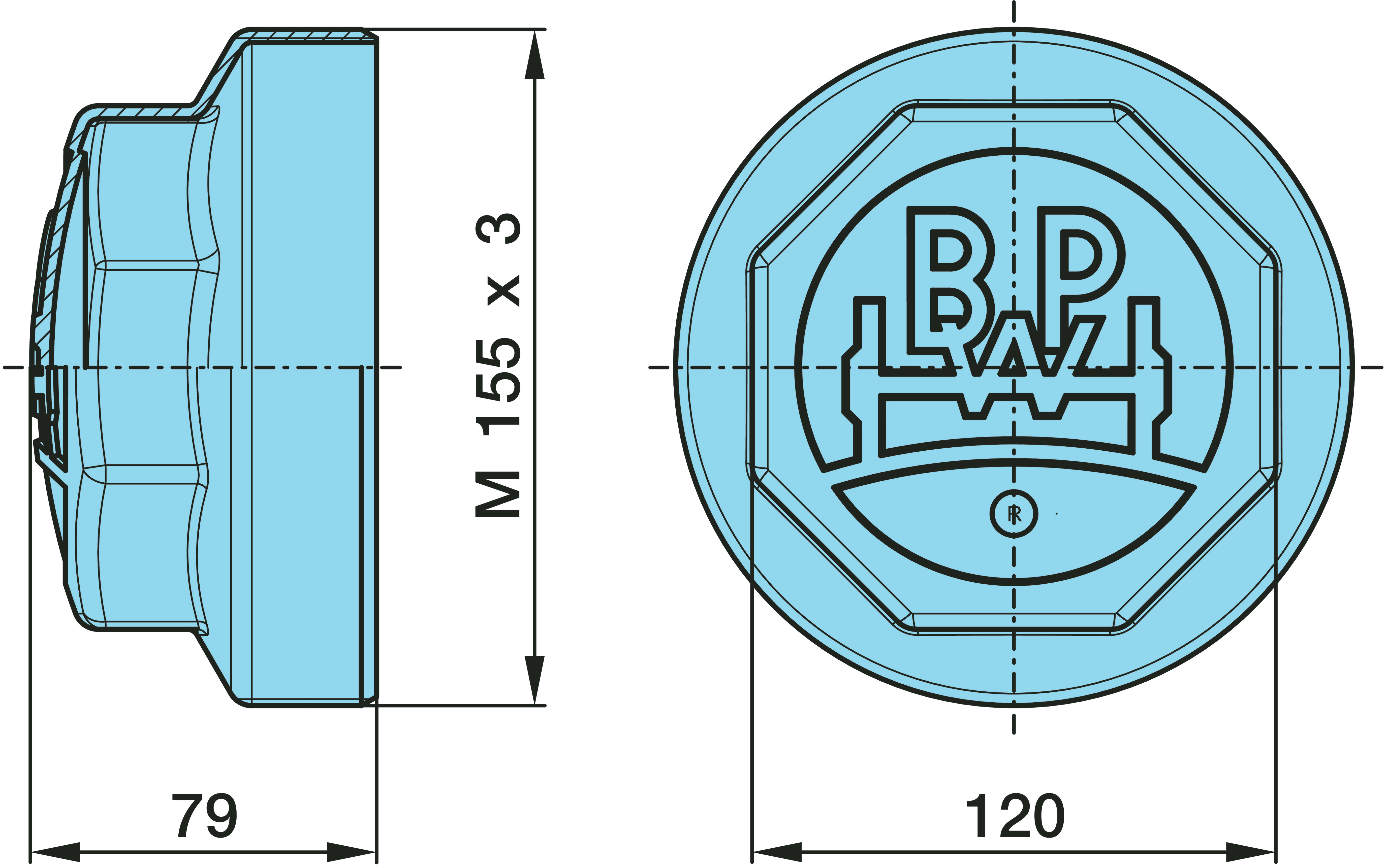 Dimension: M 155 x 3 / H 79 / SW 120 / 8kt.