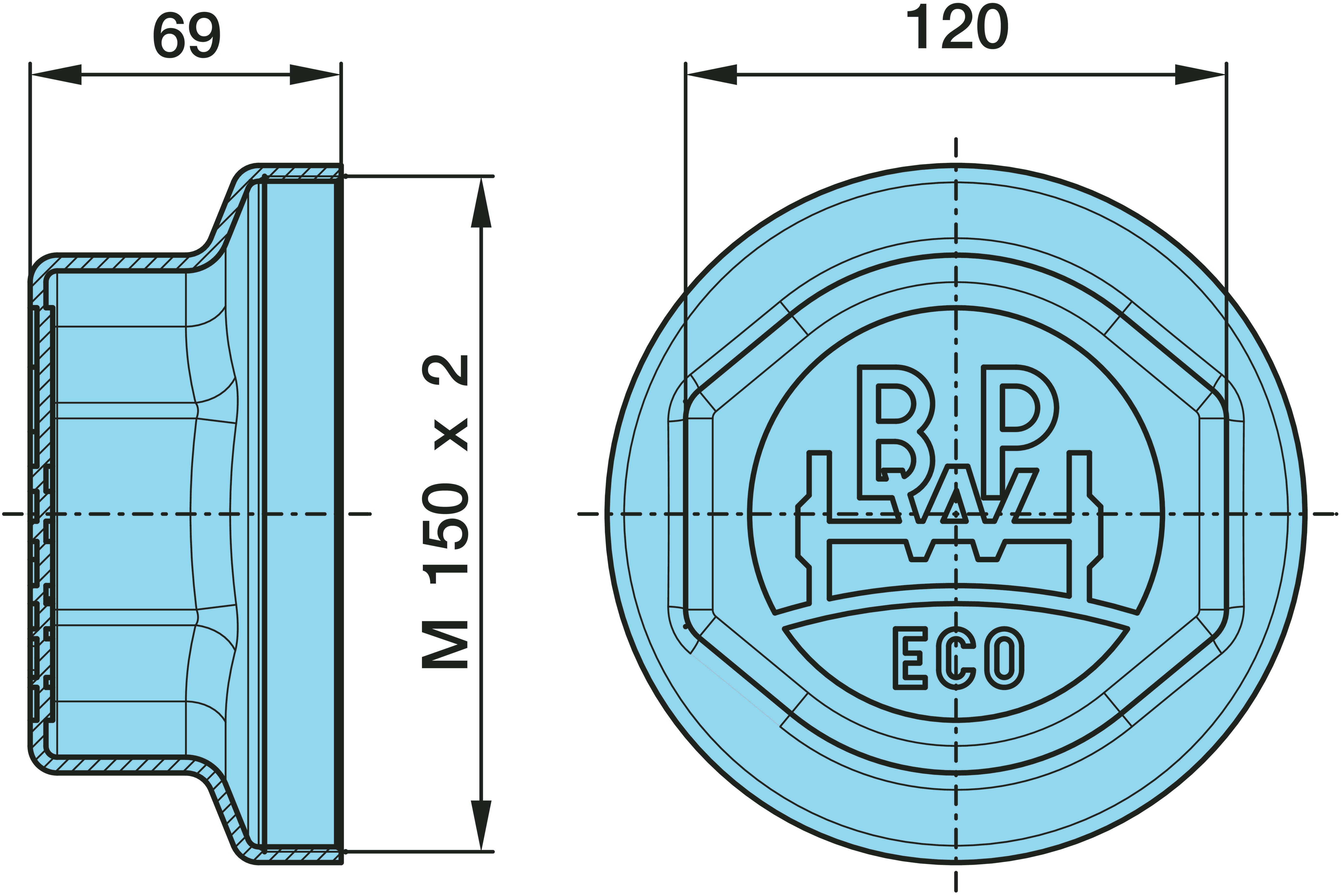 Dimension: M 150 x 2 / H 69 / SW 120 / BPW